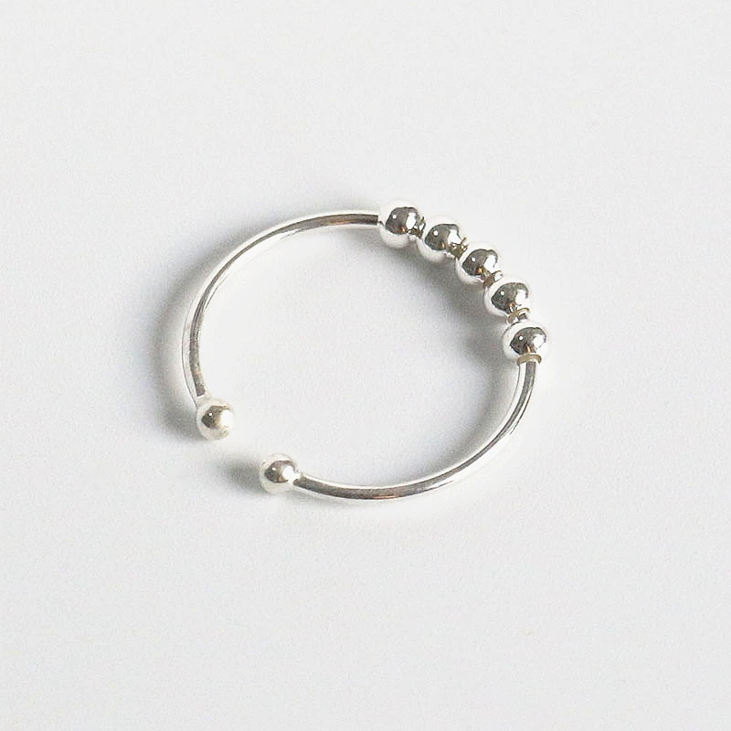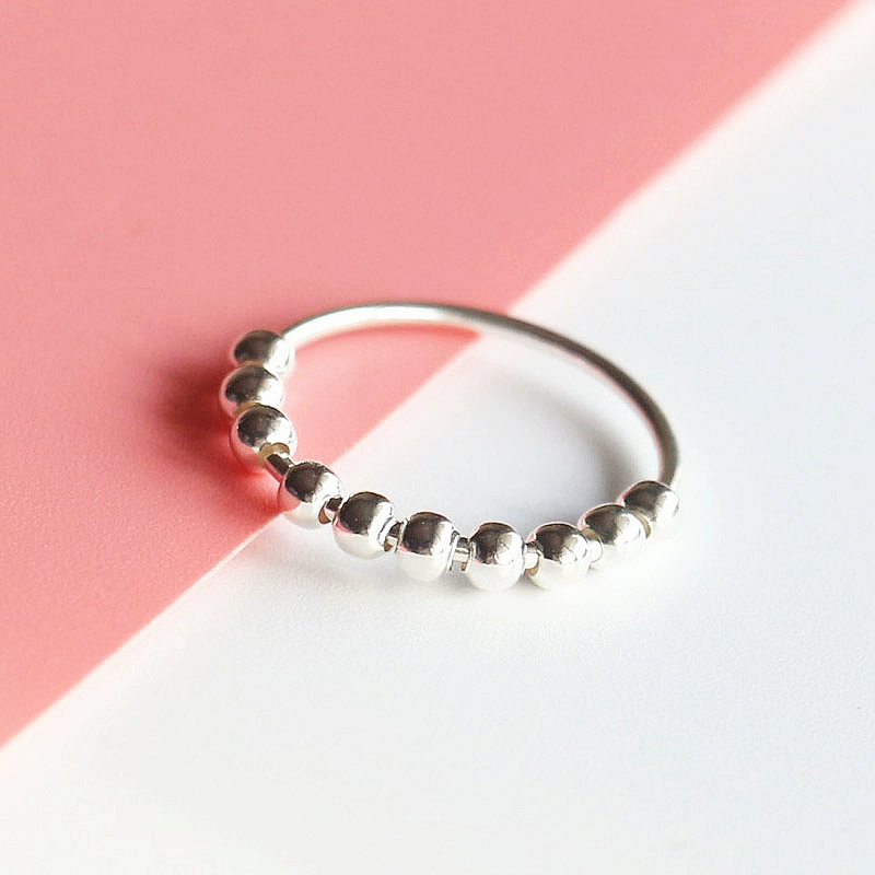 Rotating sterling silver simple geometric round bead female student ring