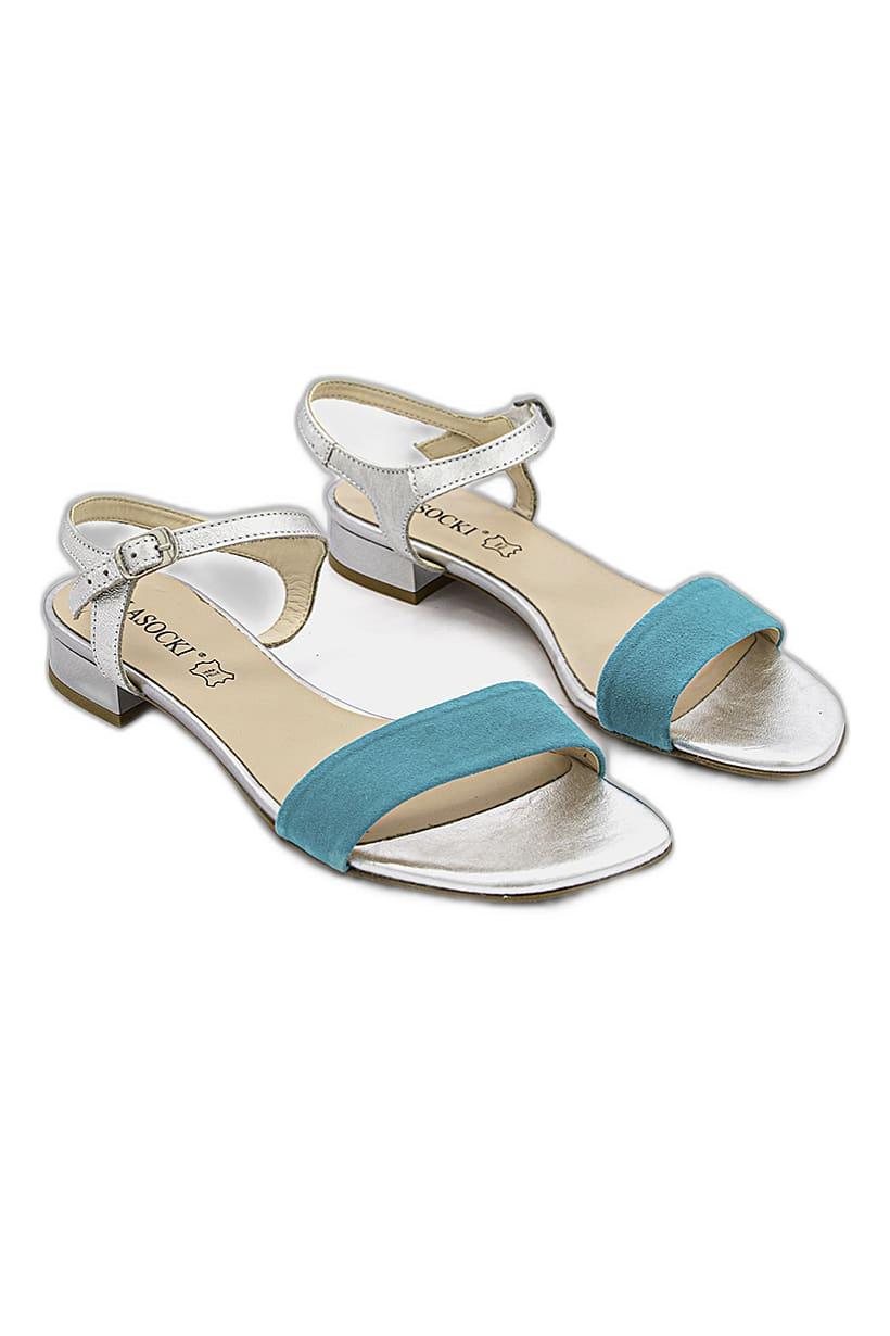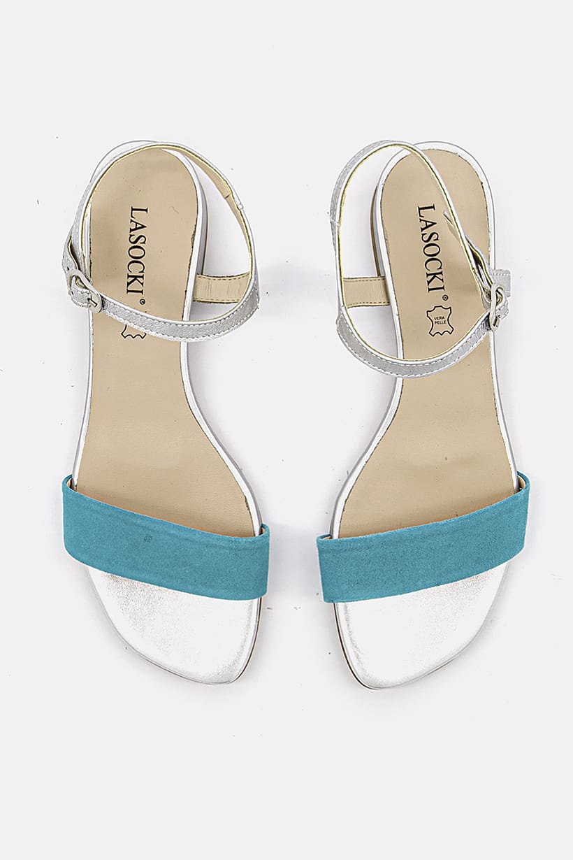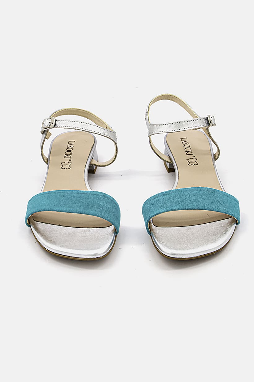 Turquoise and Silver Sandals with Adjustable Buckle for Women.