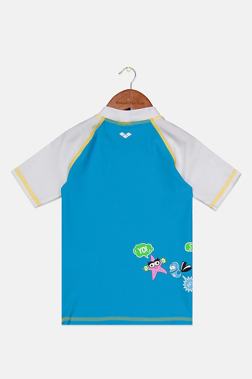 | nameOriginal | Kids Boys Graphic Rash Guard, Turquoise and White |