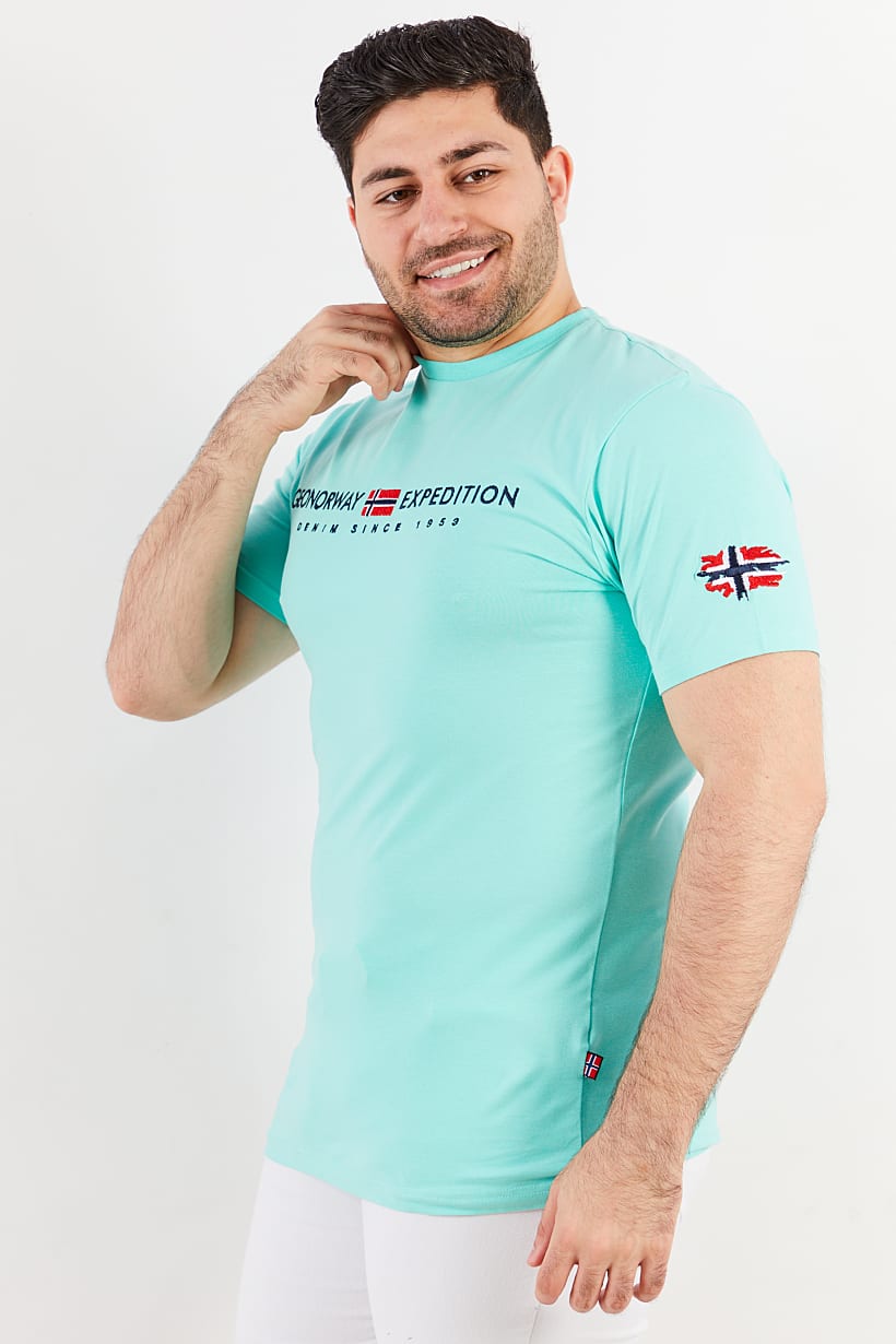 | sub_Categories | Men Clothing, T-Shirts & Vests, men crew neck short sleeve embroidered logo t shirt turquoise |