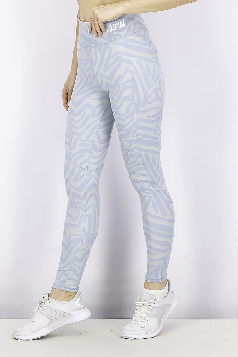 This product features straight bottom hem, and is suitable for machine washing. It has a sportswear fit and is available in US size. The fabric is made of 90% polyester and 10% elastane, with a light thickness. It is designed for training and comes in a turquoise color family with an allover print pattern. Please note that the product color may slightly vary due to photographic lighting sources or monitor settings. This product is classified as leggings/tights sportswear.