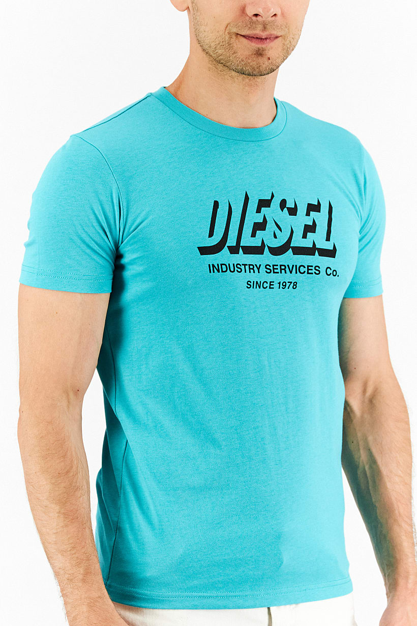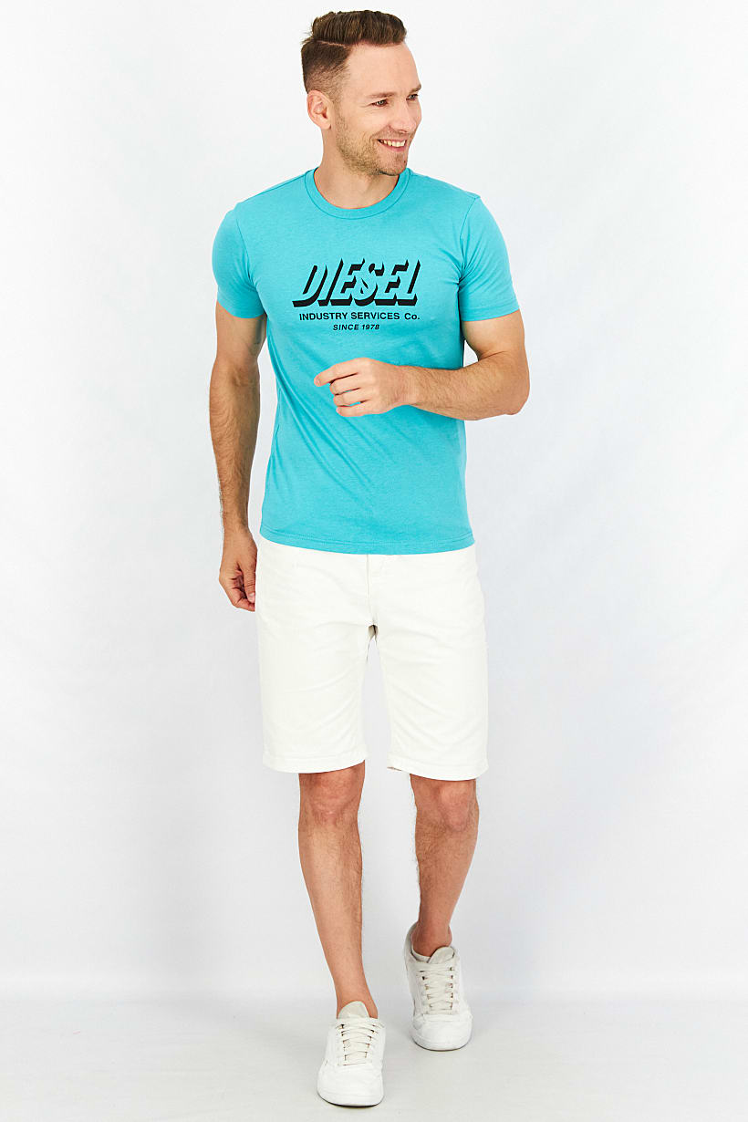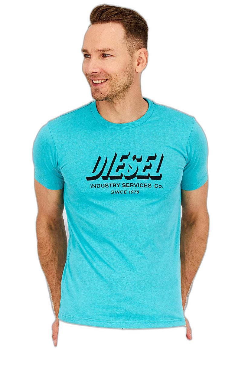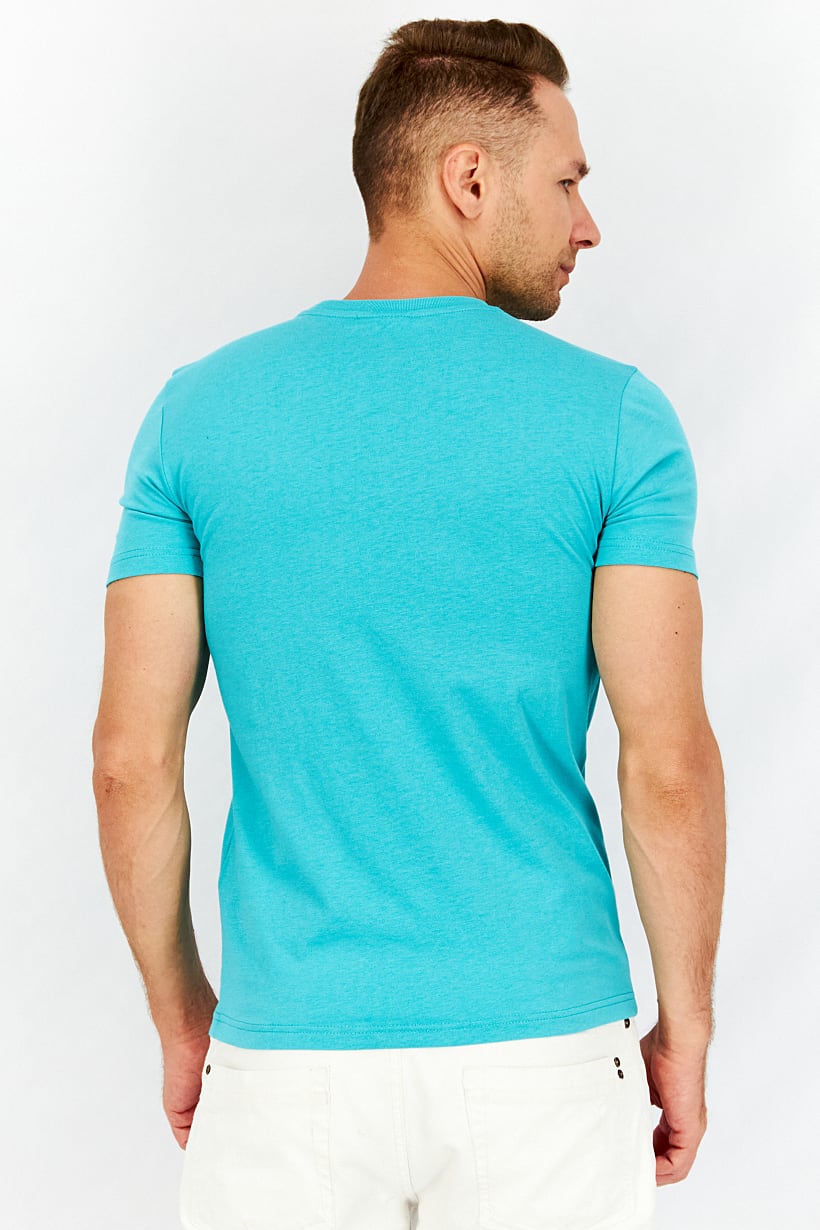 Turquoise Graphic T-shirt with Short Sleeves for Men.