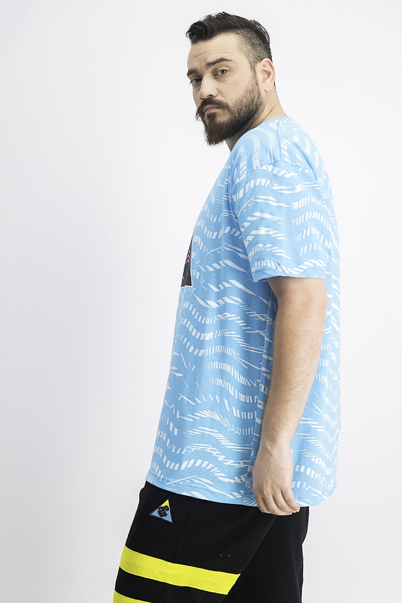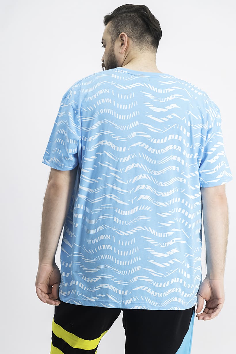 T-Shirt Style : Crew Neck, Type of Neckline & Collar : Round neckline , Type of Hem : Straight hem , Care : Machine washable, Occasion : Casual, Pattern & Print : Allover print, Types of Closures : Pullover, Fabrics : 100% Cotton, Color Family : Blue, Sleeve Length : Short Sleeve, Size shown : International, Fit : Regular fit,