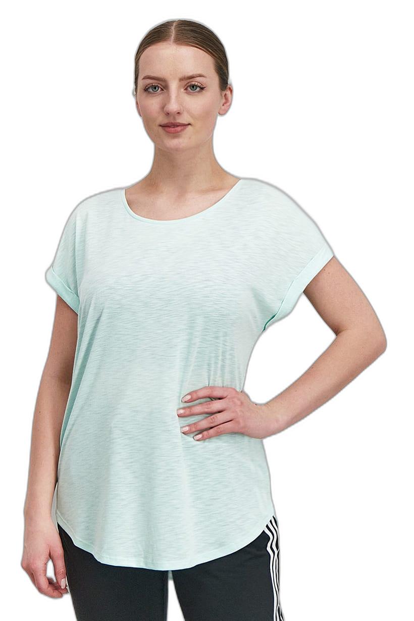 | descriptionOriginal | Care : Machine washable, Fit : Comfort fit, Ideal For : Women, Sleeve Length : Short Sleeve, Type of Sport : Training, Types of Hem : Straight hem, Types of Neckline & Collar : Scoop neckline, Disclaimer : Product color may slightly vary due to photographic lighting sources or your monitor settings., Fabrics : 50% Polyester, 50% Viscose, Pattern & Print : Plain/Solid, Sportswear Type : T-Shirt, Types of Closures : Pullover, Color Family : Turquoise, |