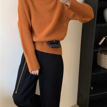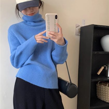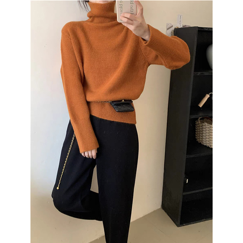| nameOriginal | Turtleneck solid color knitted bottoming shirt top for women autumn and winter New thickened soft glutinous loose lazy sweater pullover outer wear |