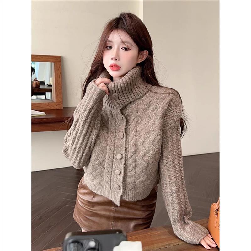 | nameOriginal | Turtleneck Sweater Coat Women's Winter 2024 New Lazy Style Design Soft Waxy Loose Short Long-sleeved Sweater |