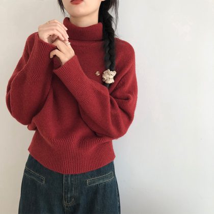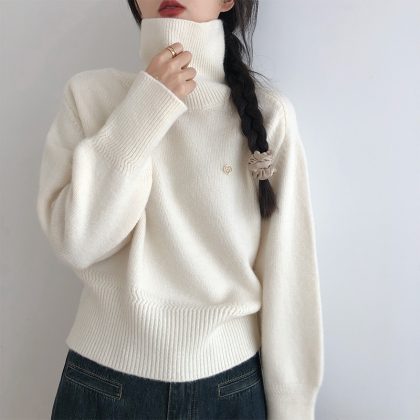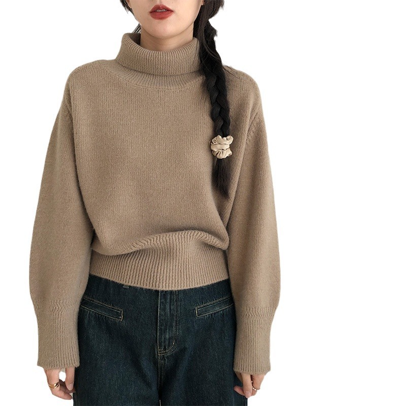 | nameOriginal | Turtleneck Sweater Women's Autumn and Winter 2023 New Soft Waxy Lazy Style Loose Outer Wear High Texted Knitwear Thickened Top |