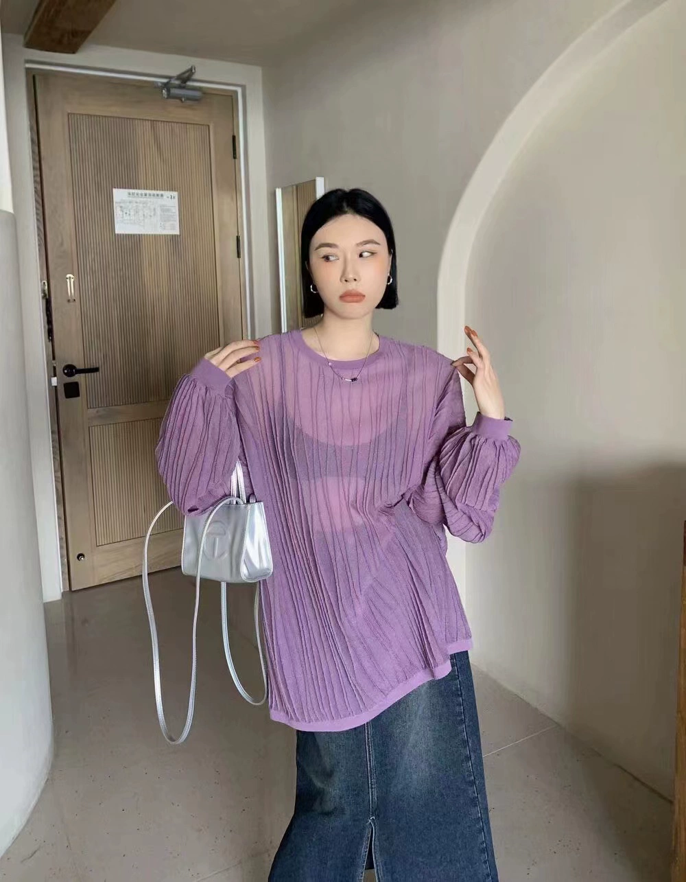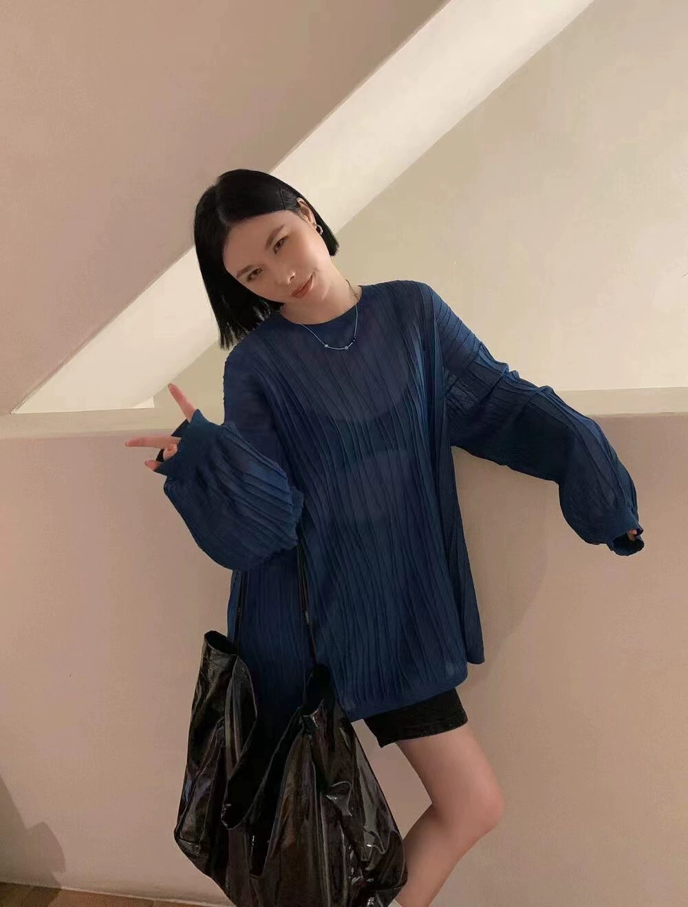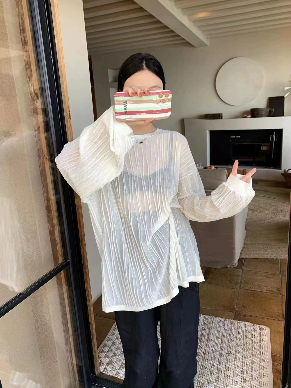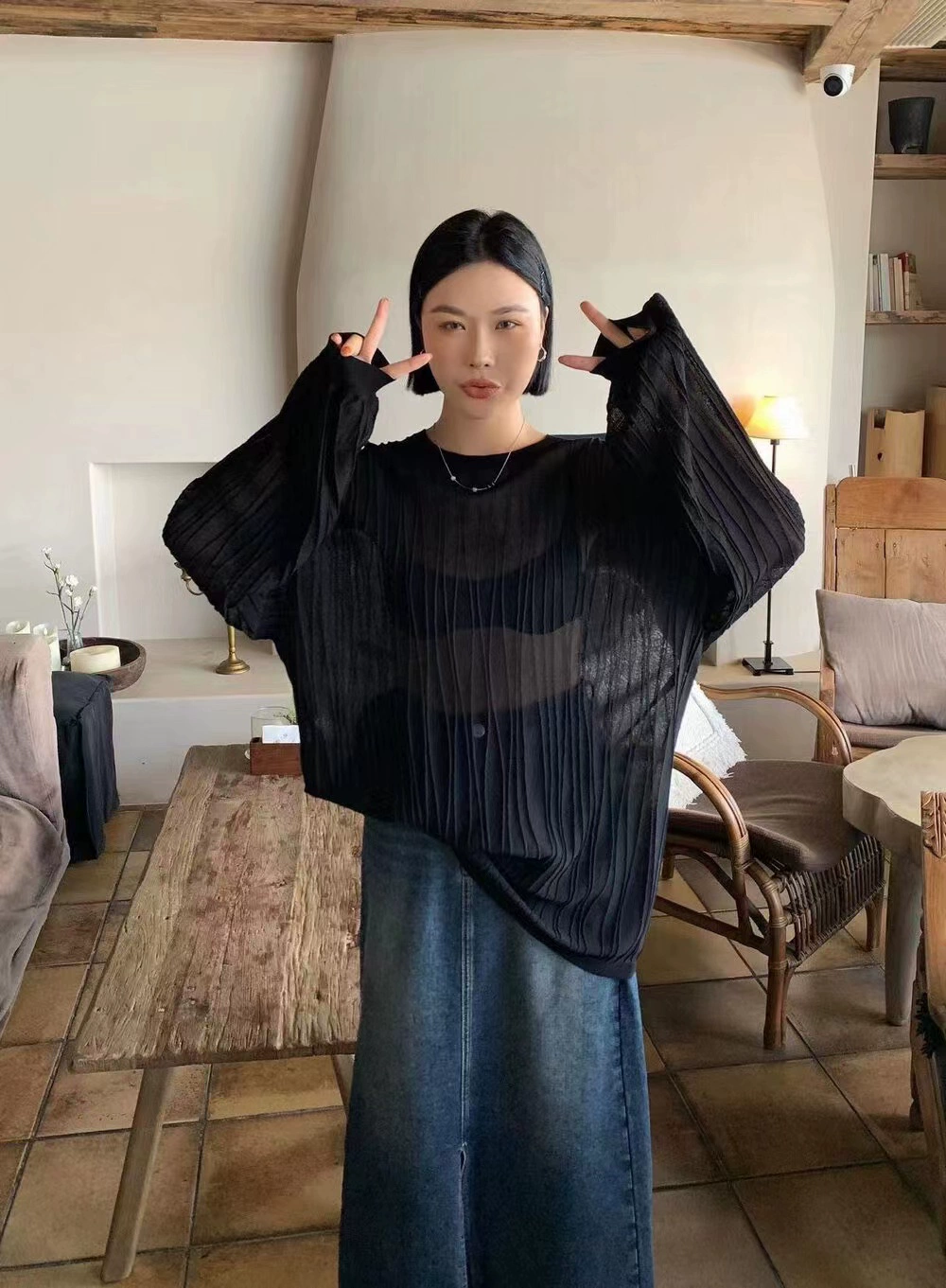 | nameOriginal | TUTU simple slightly see-through pleated knitted loose sun protection shirt |