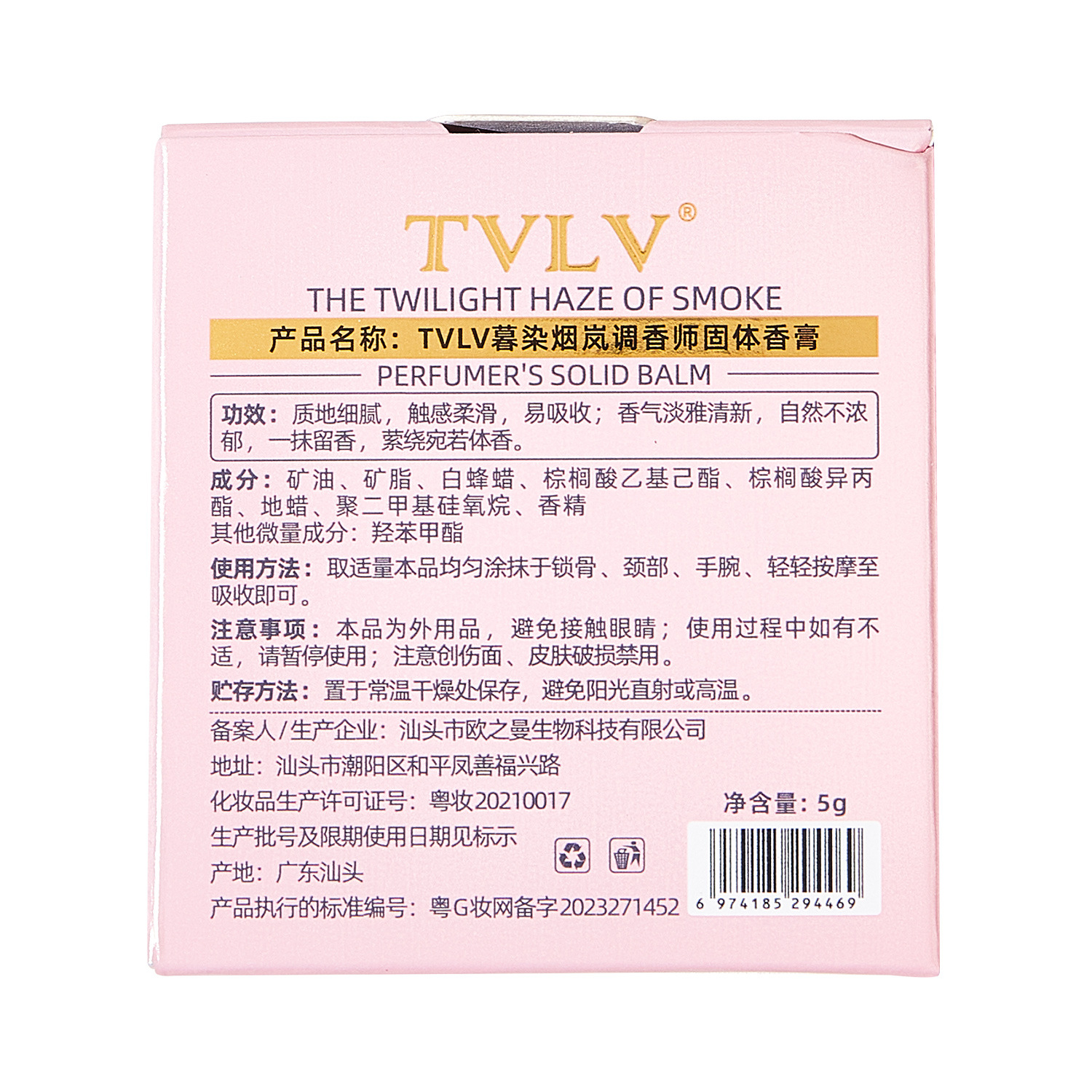 | nameOriginal | TVLV Twilight dyed smoke Lan paper falling cloud smoke perfumer solid balm lasting fragrance fresh elegant small portable |