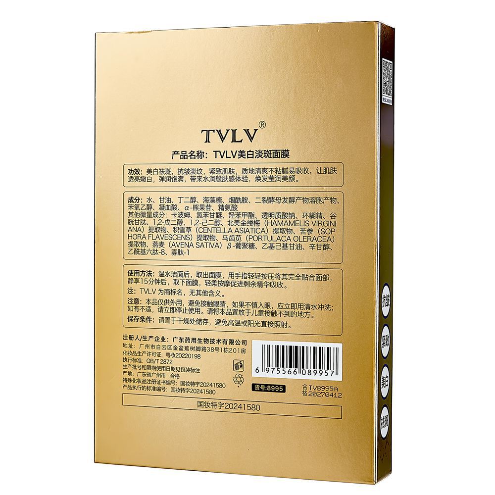 TVLV Whitening and Spot-Fading Mask Niacinamide Essence Skin Care Cold Application Compact Anti-Wrinkle Mask Hydrating Patch Mask