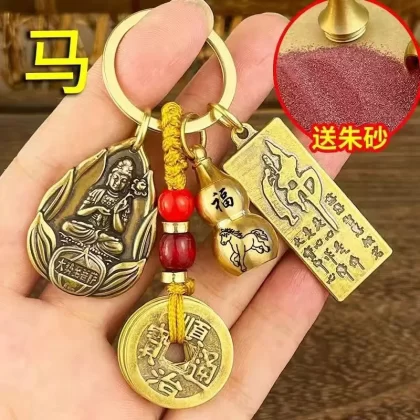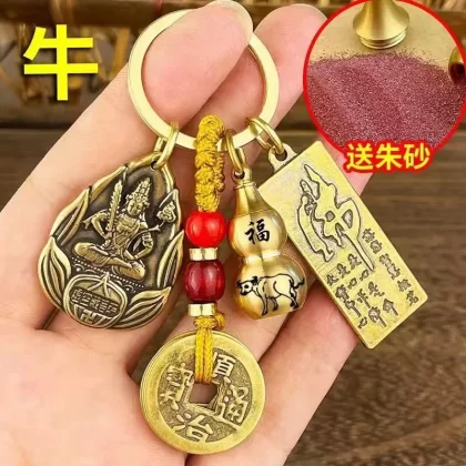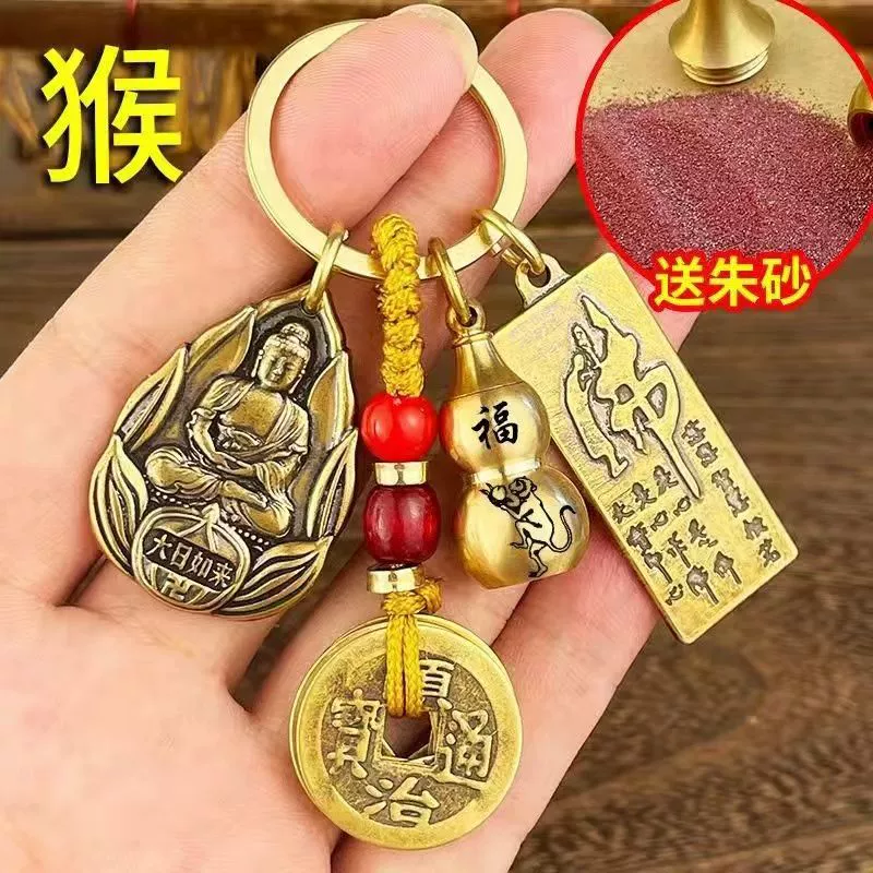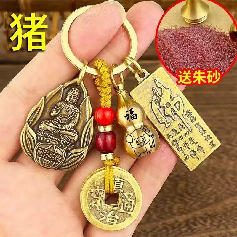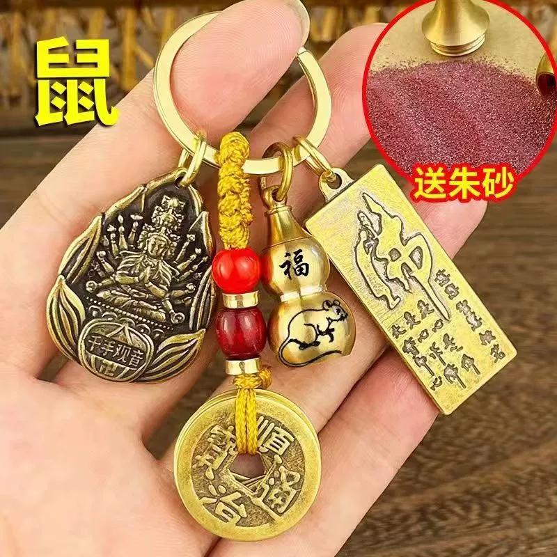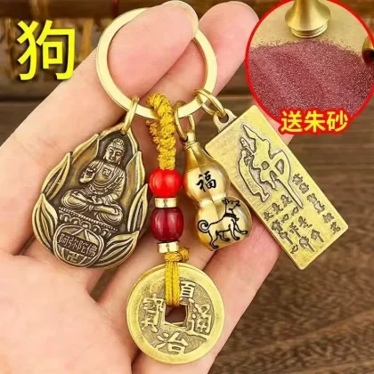 | nameOriginal | Twelve zodiac natal Buddhas, eight guardian gods, brass keychain, Amitabha, Thousand-Armed Avalokitesvara, Void Bodhisattva |