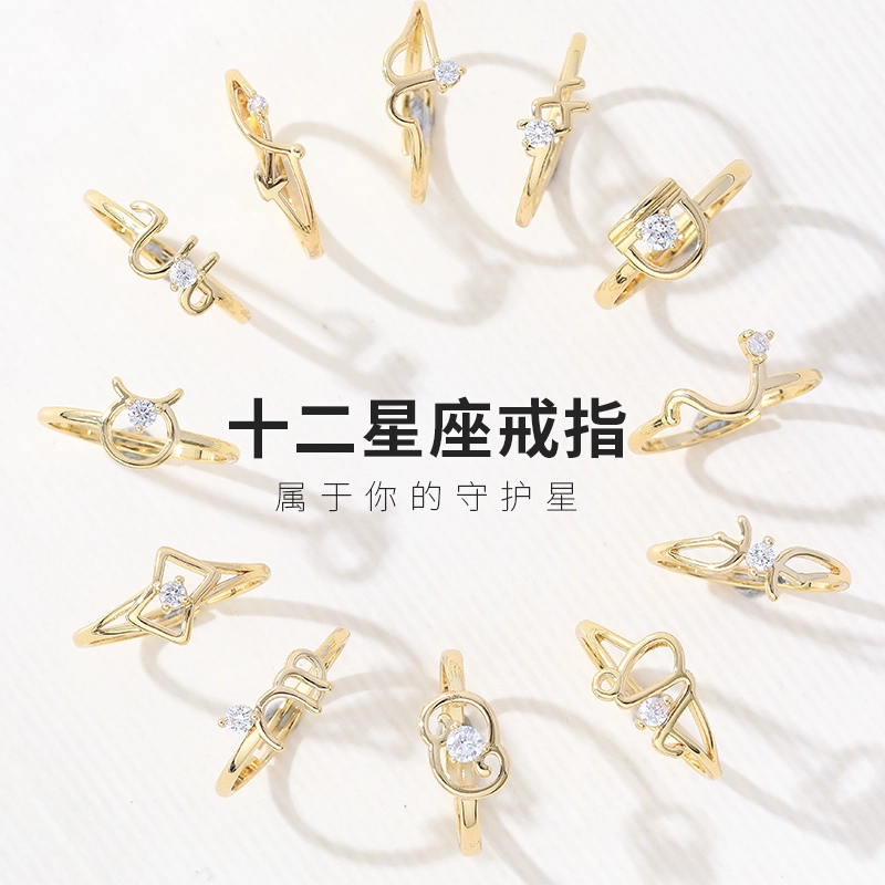 | nameOriginal | Twelve zodiac signs zircon ring women's fashionable personality Japanese light luxury niche design ring internet celebrity open index finger ring |