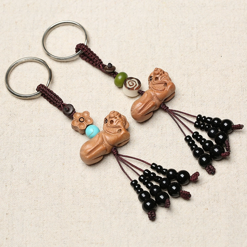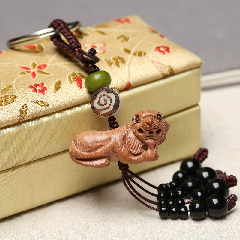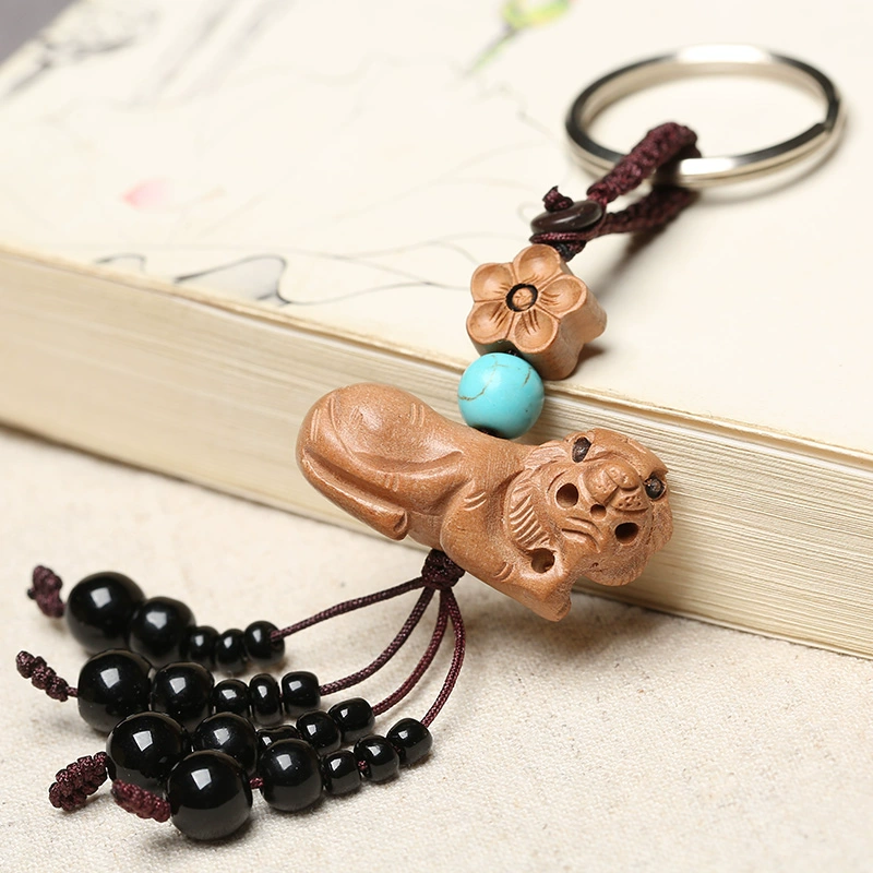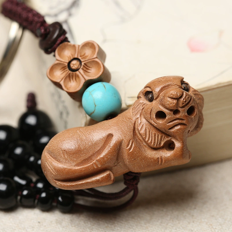 Twelve zodiac tiger peach -wood carving car keychain pendant.