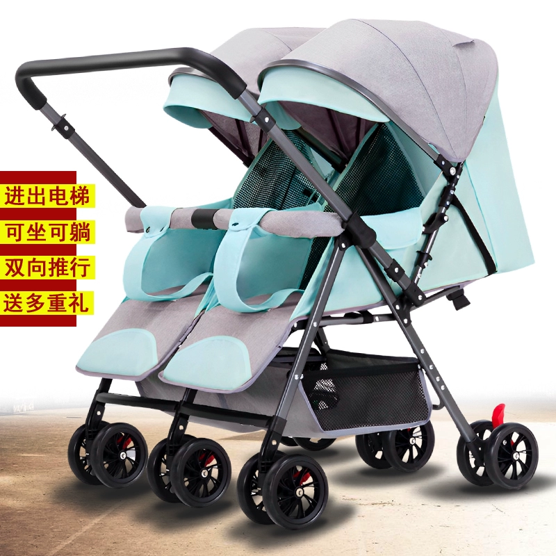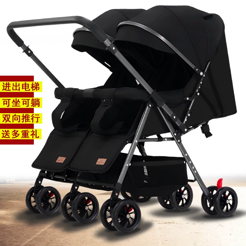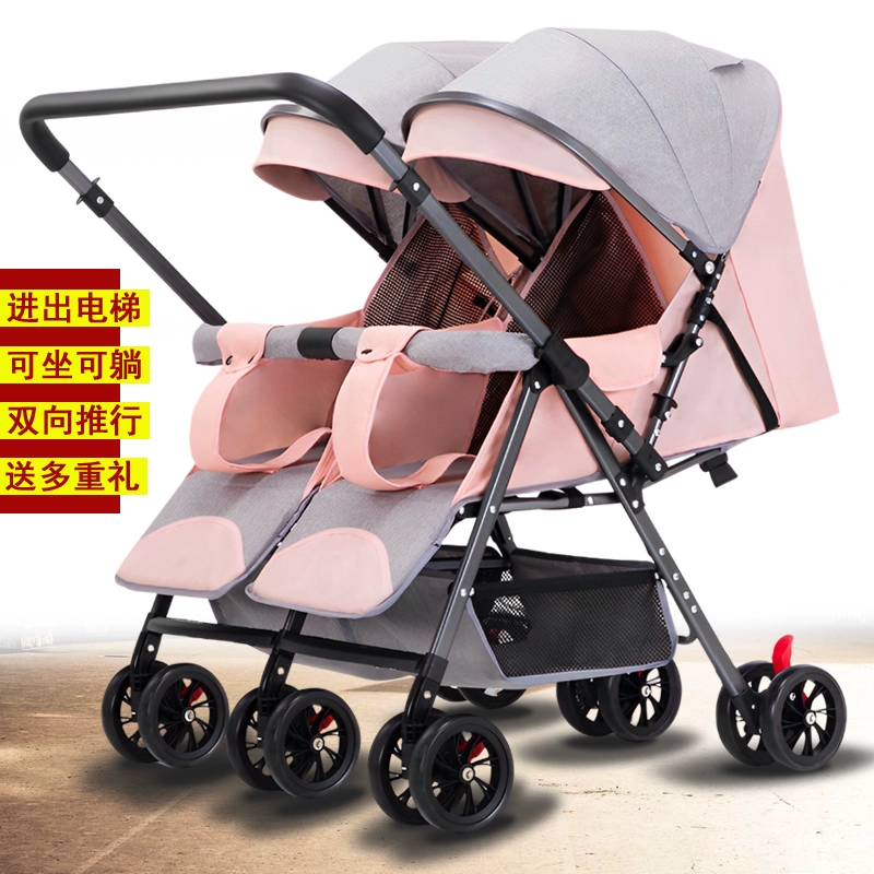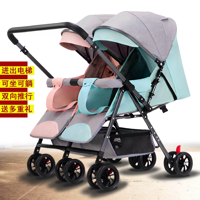 Twin twin baby trolley double sitting double lying foldable double person can enter the elevator and put the car