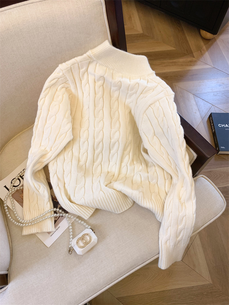 | nameOriginal | Twist embroidered zipper lapel sweater women's autumn and winter outer wear soft glutinous stand collar sweater lazy style top |