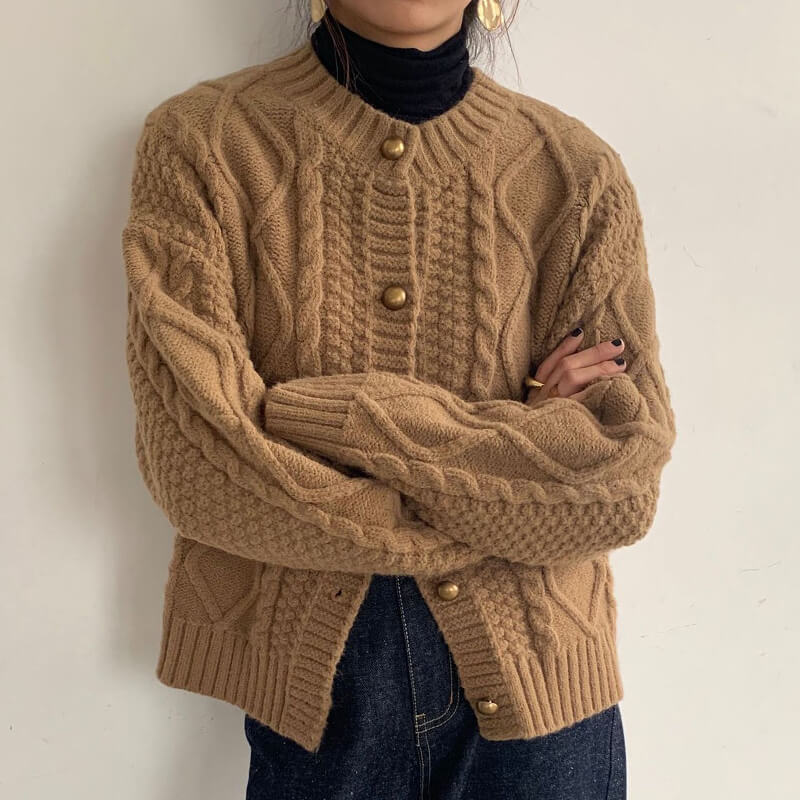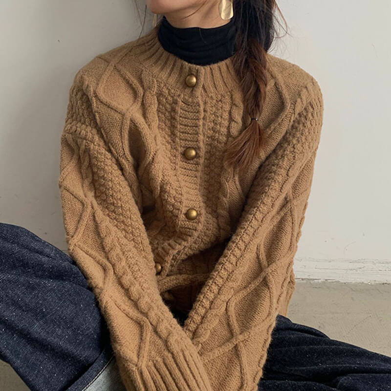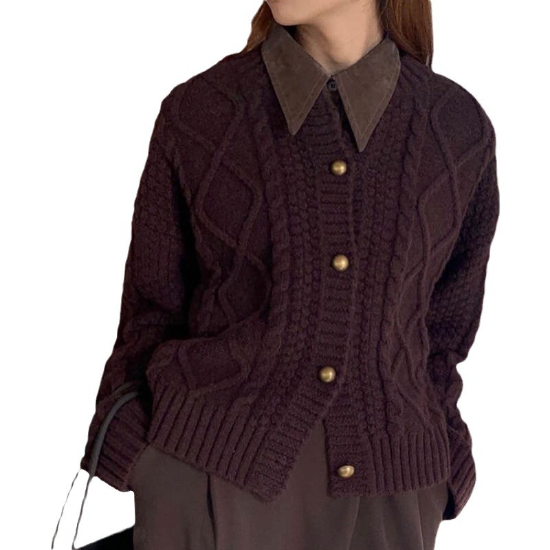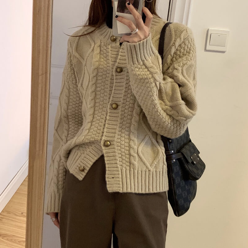 Twist Knitted Cardigan Women’s Thickened Loose 2024 Spring and Autumn New Korean Style Lazy Wind Thick Line Round Neck Sweater Jacket
