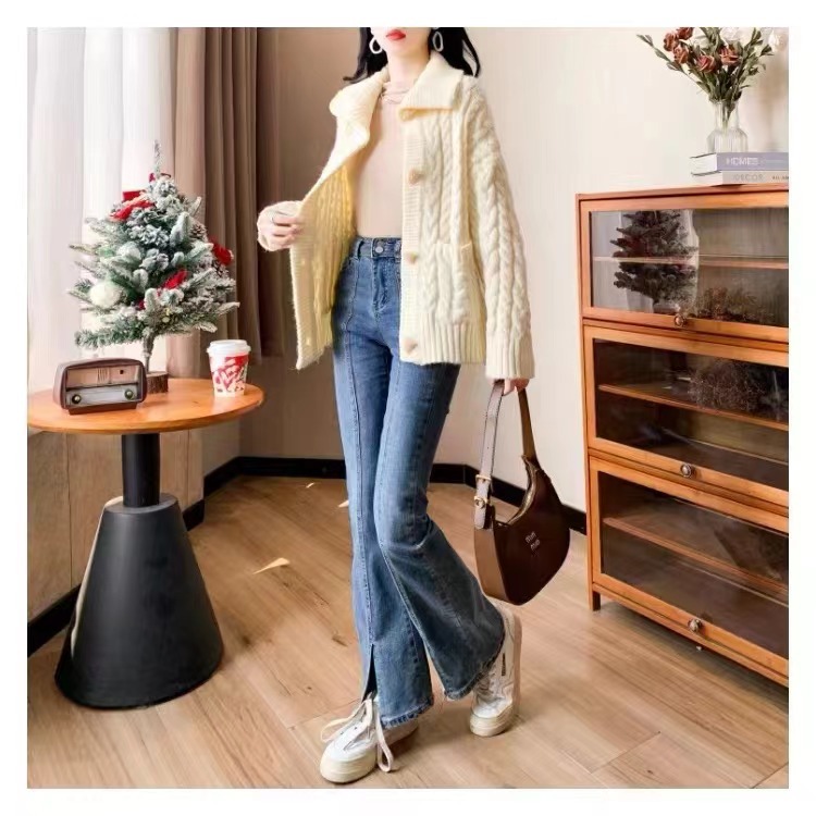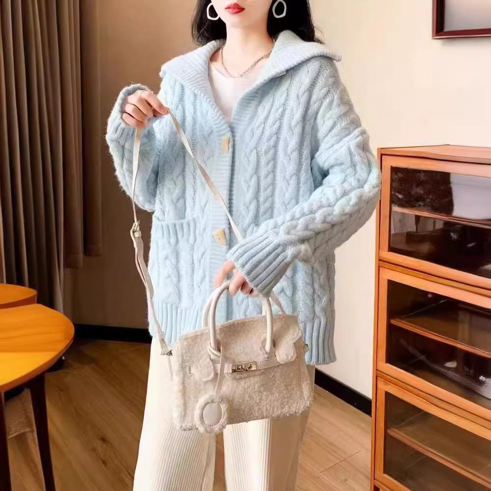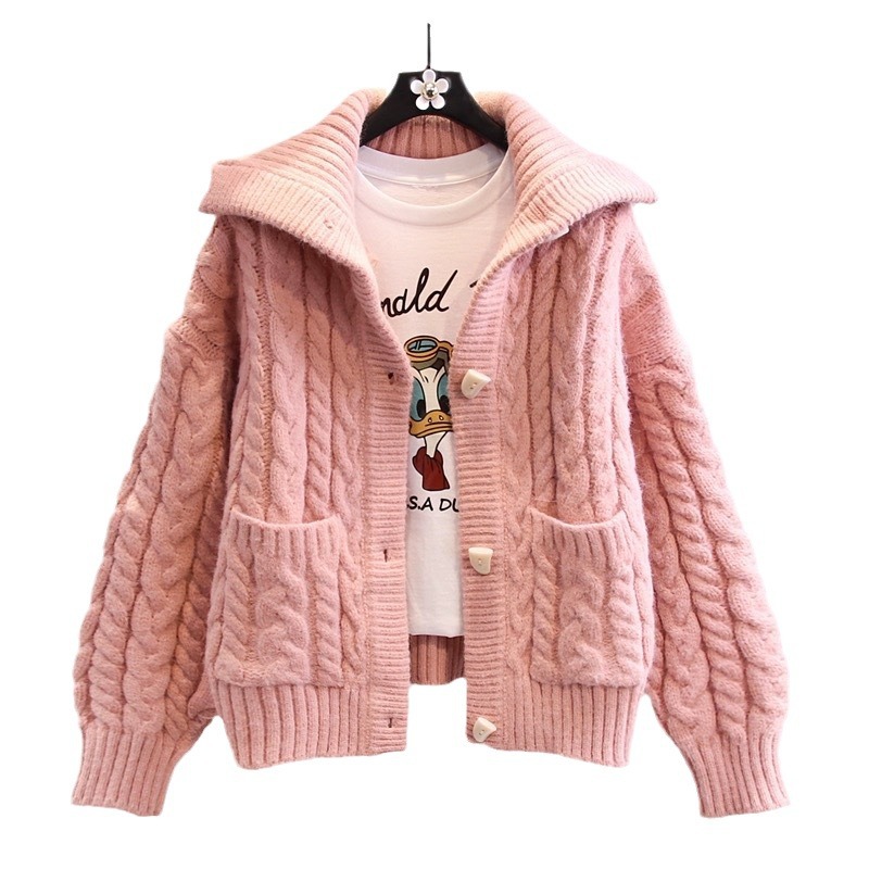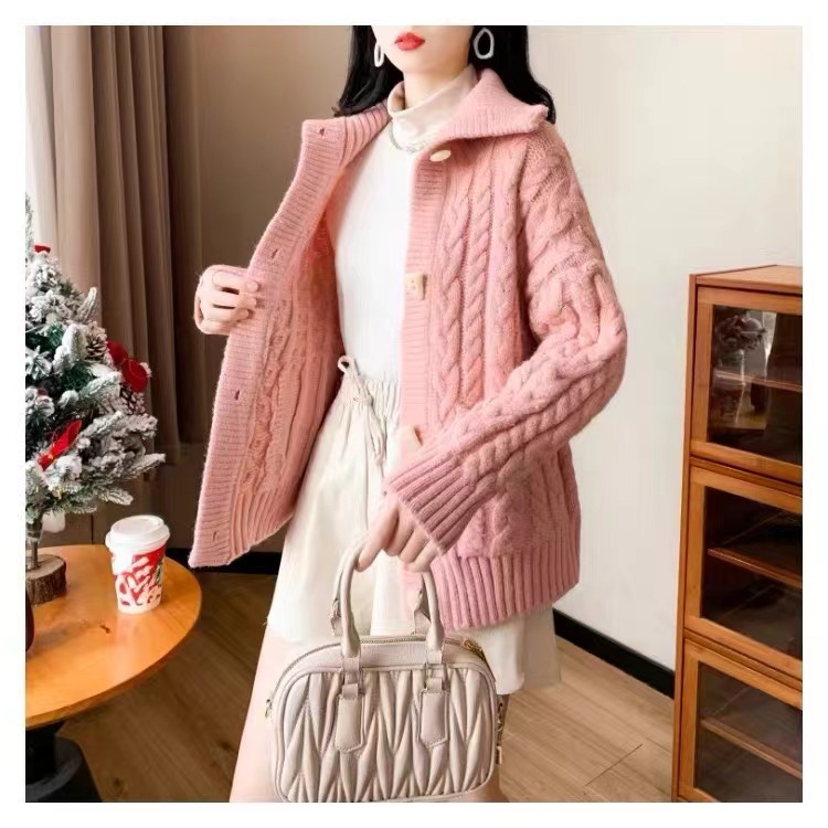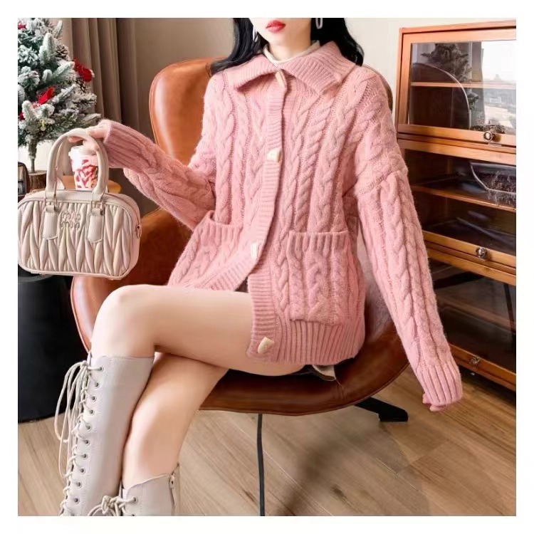 | nameOriginal | Twist Lapel Sweater Coat Women's 2024 Autumn and Winter New Korean Style Loose Slimming Lazy Style Thickened Knitted Cardigan |