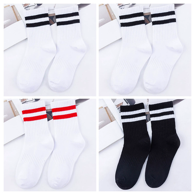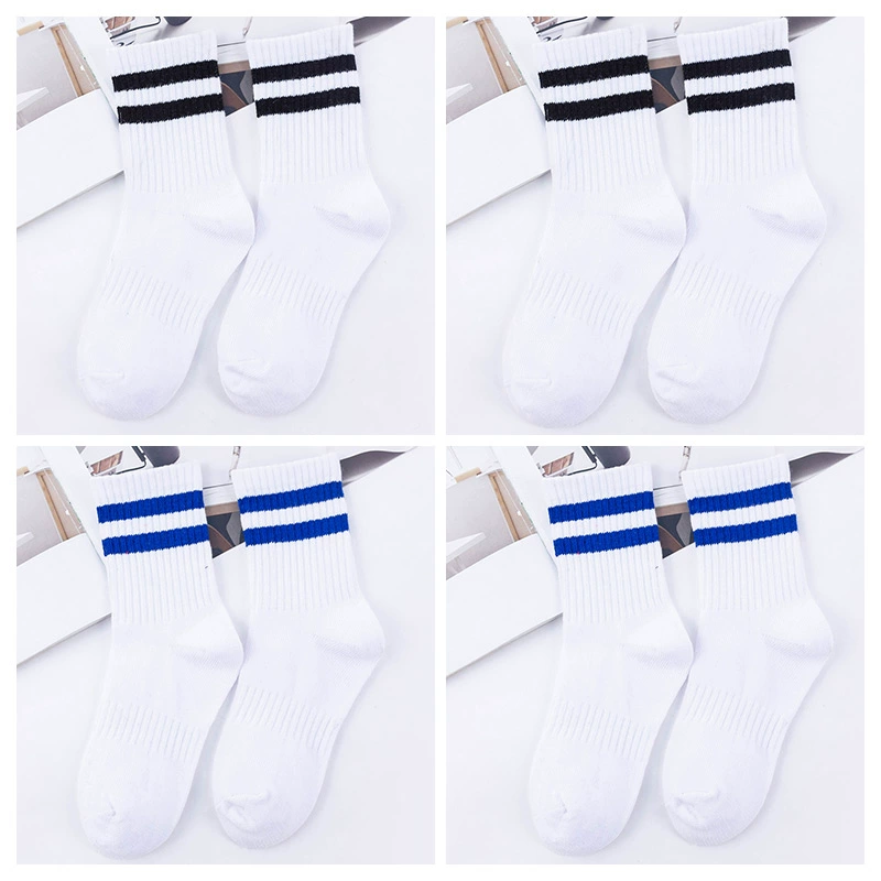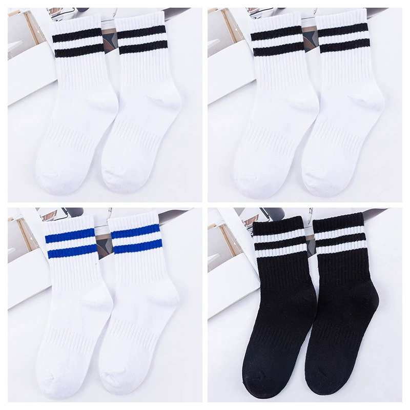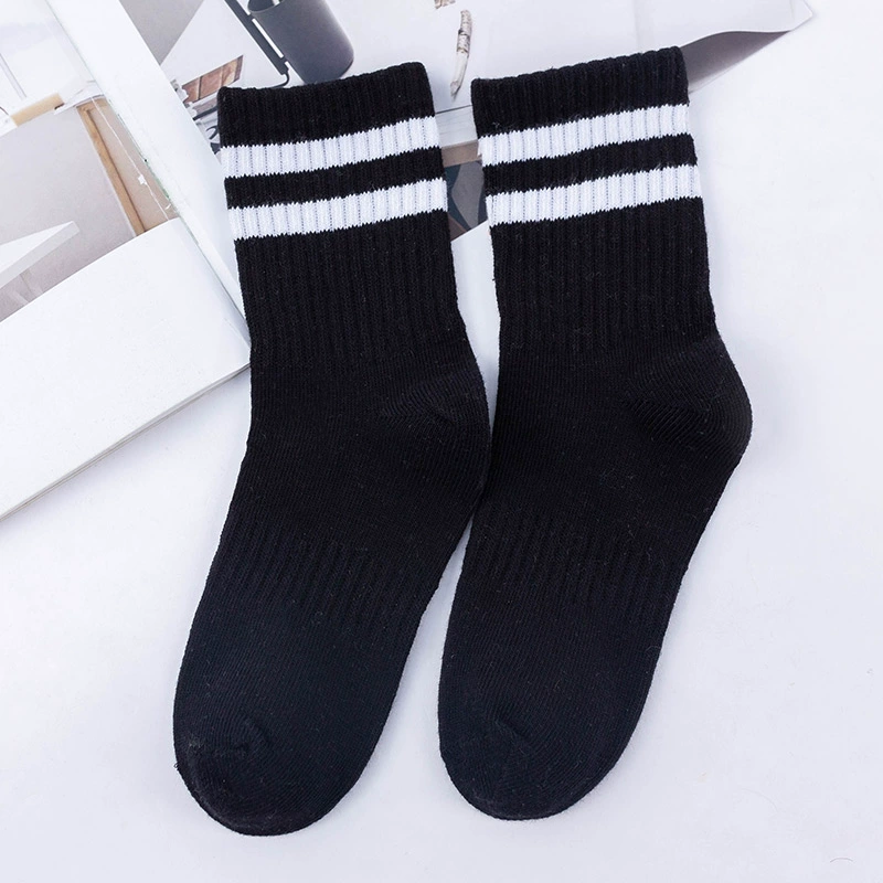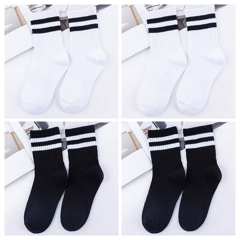 | nameOriginal | Two-bar mid-calf spring and autumn striped black and white football uniform socks |