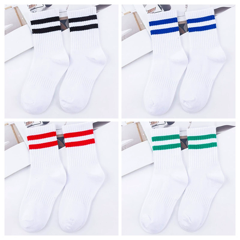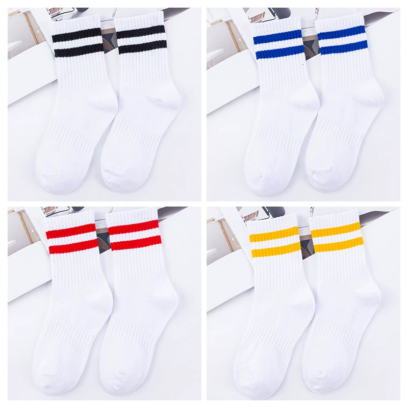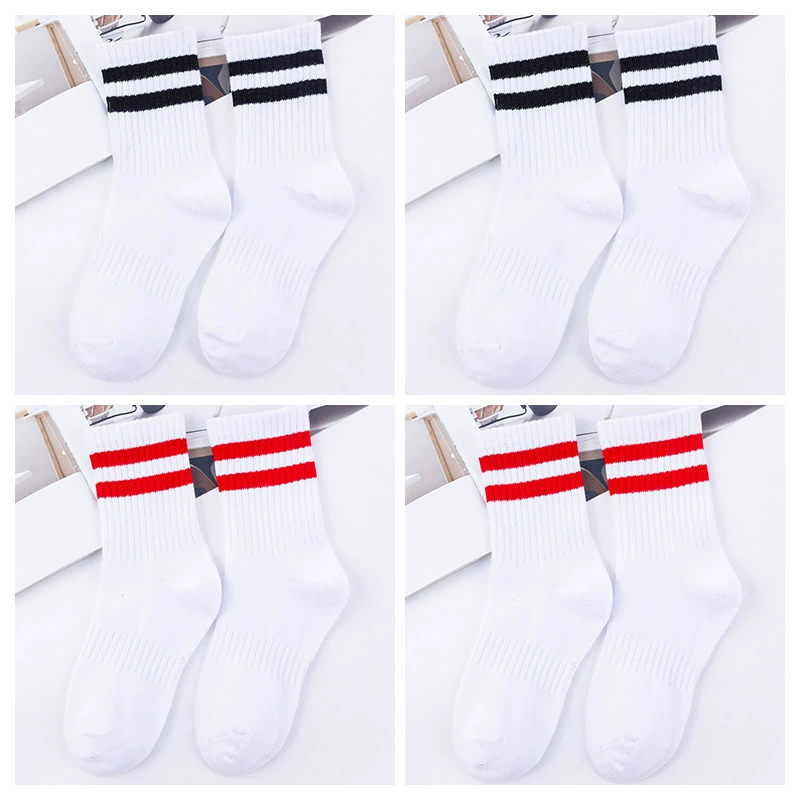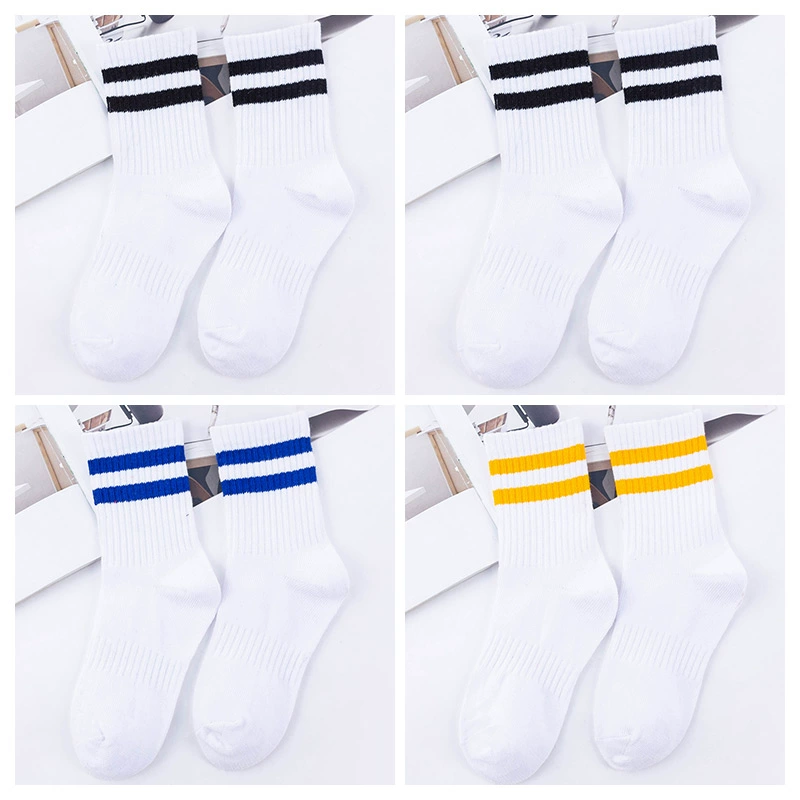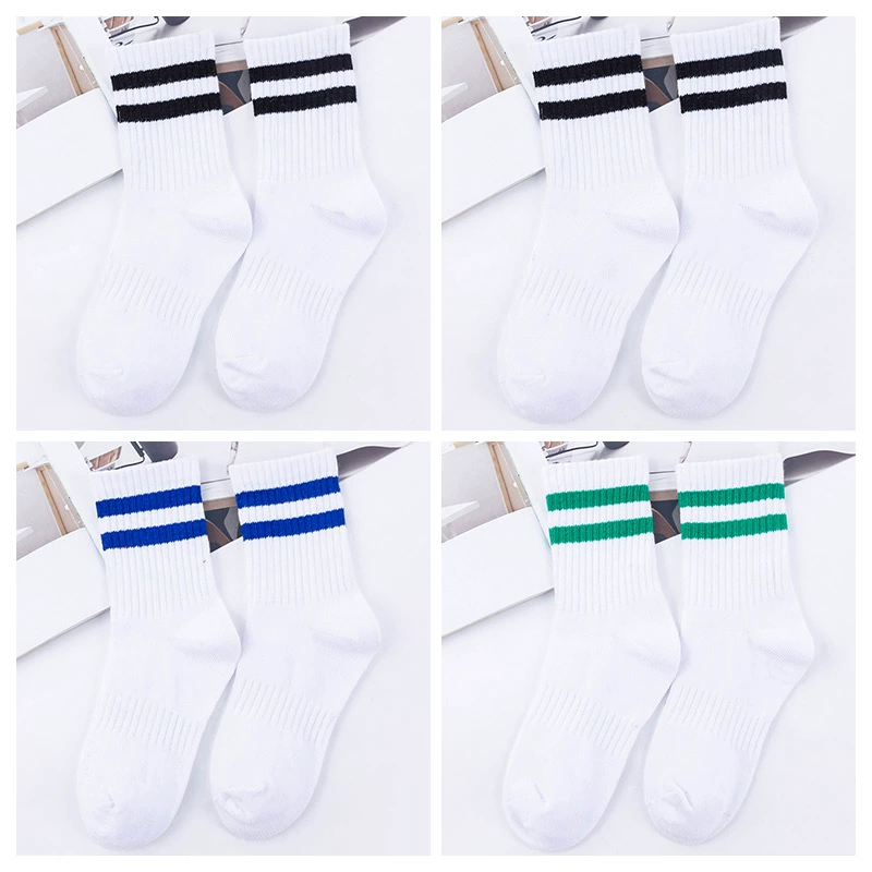 | nameOriginal | Two-bar mid-calf spring and autumn striped black and white football uniform socks |