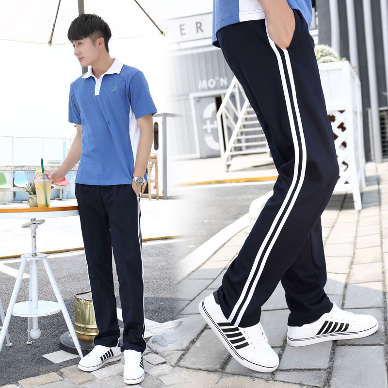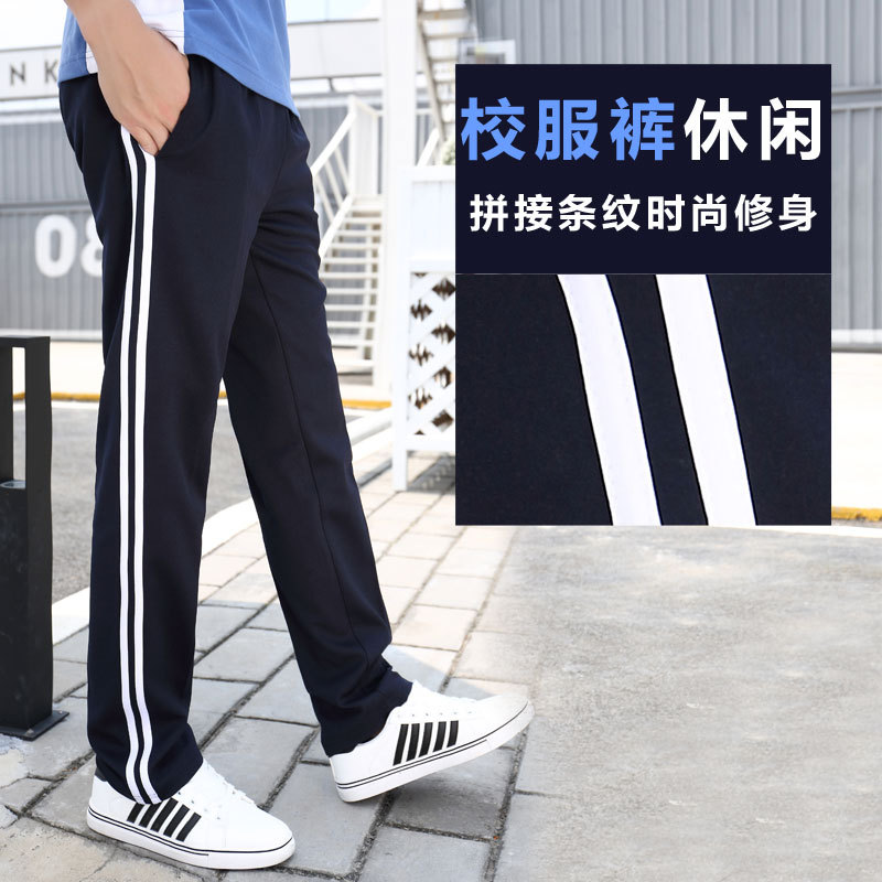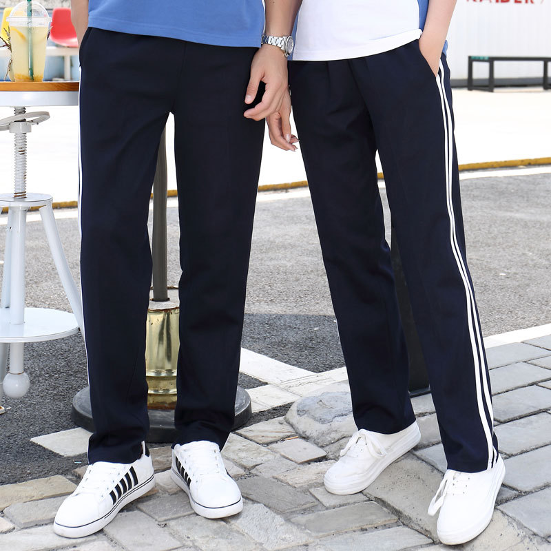 | nameOriginal | Two bars school uniform pants spring and autumn male and female middle school student school pants loose casual pants two bars two bars school uniform long pants |