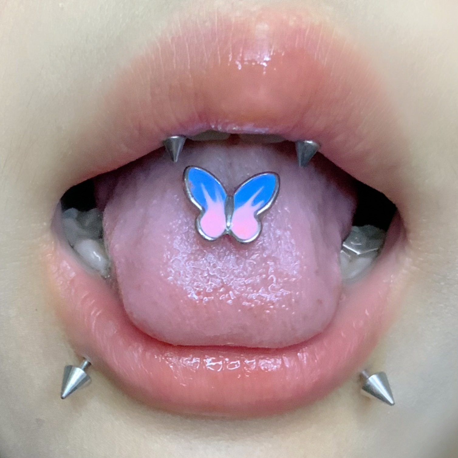 | nameOriginal | Two-color butterfly tongue nail oil dripping oil puncture jewelry niche titanium steel can drink European and American ins sweet cool hot girl |