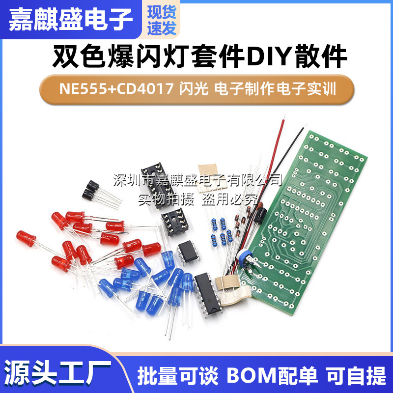 | nameOriginal | Two-color flash lamp kit DIY parts NE555 + CD4017 flash electronic production Electronic training |