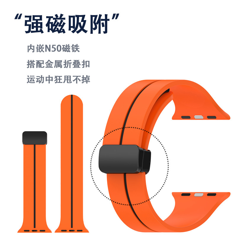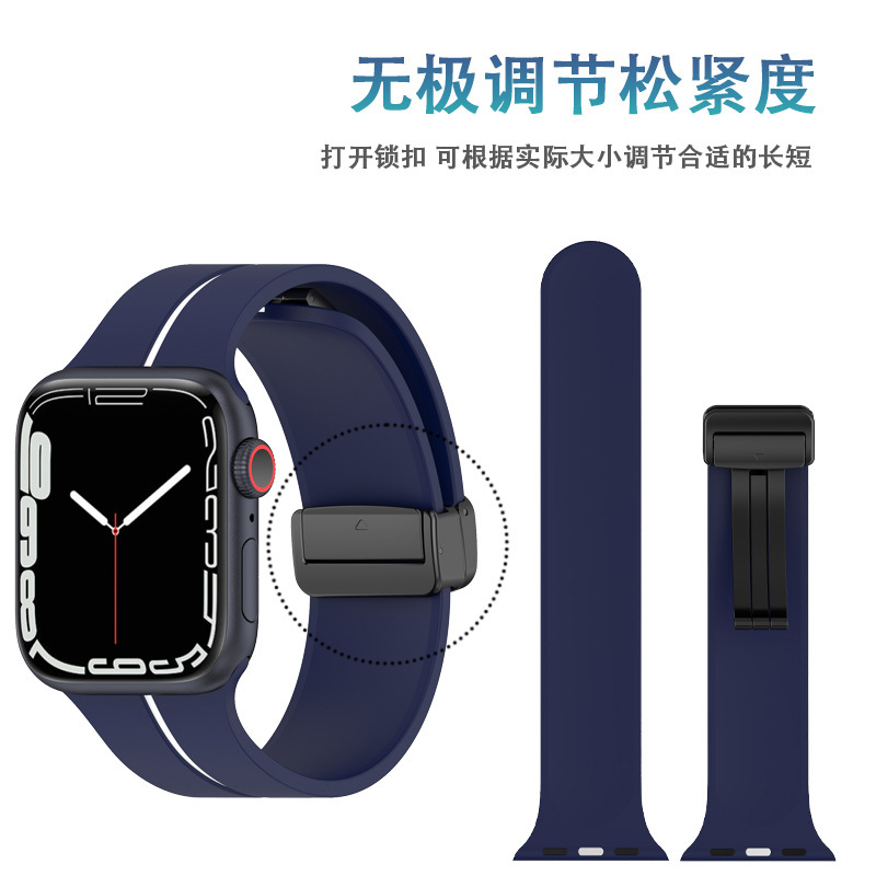 | nameOriginal | Two-color Striped Magnetic Folding Buckle Silicone Strap for Apple Watch Strap Magnetic Silicone Watch Strap |