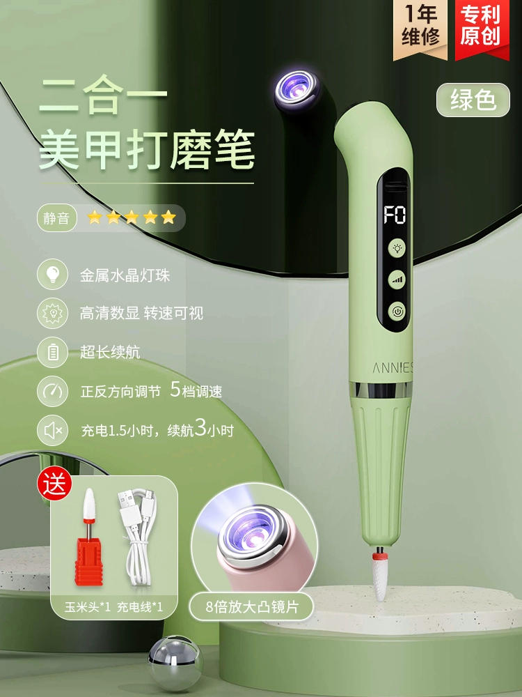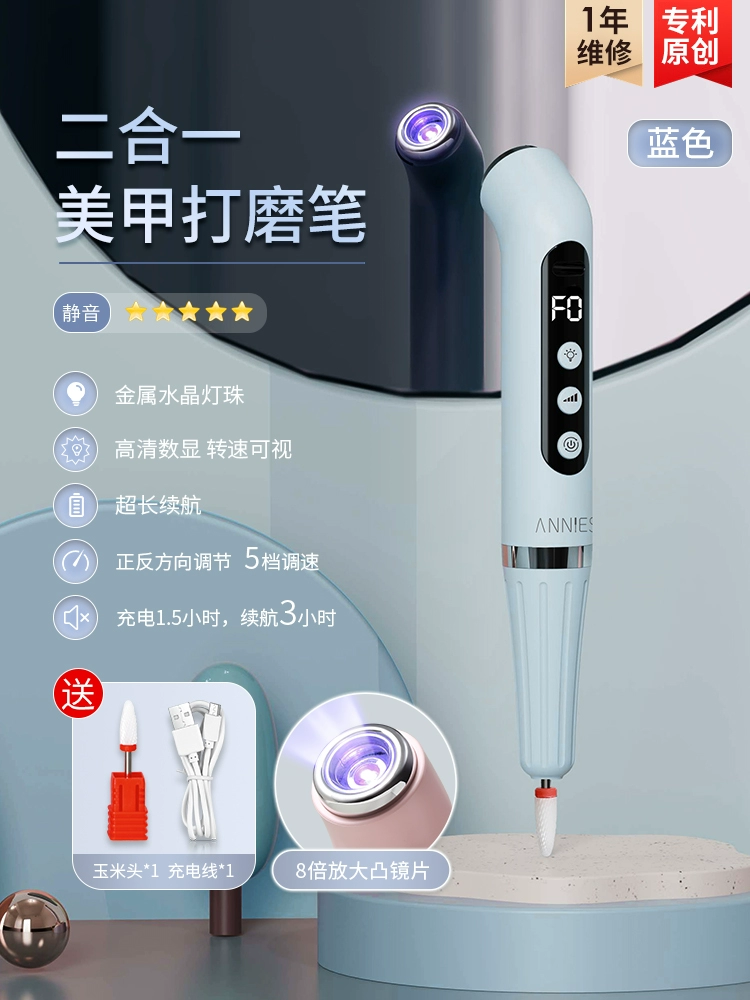 Two-in-one polishing pen, one-word light nail art, handheld portable power storage model, quick drying phototherapy lamp nail polishing machine