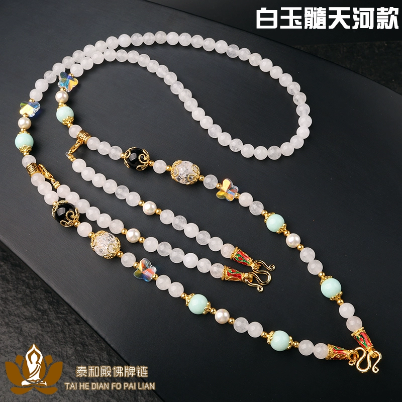 | nameOriginal | Two necklaces with crystal white powder and multiple Thai Buddha amulets |