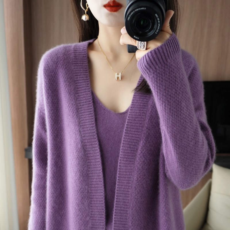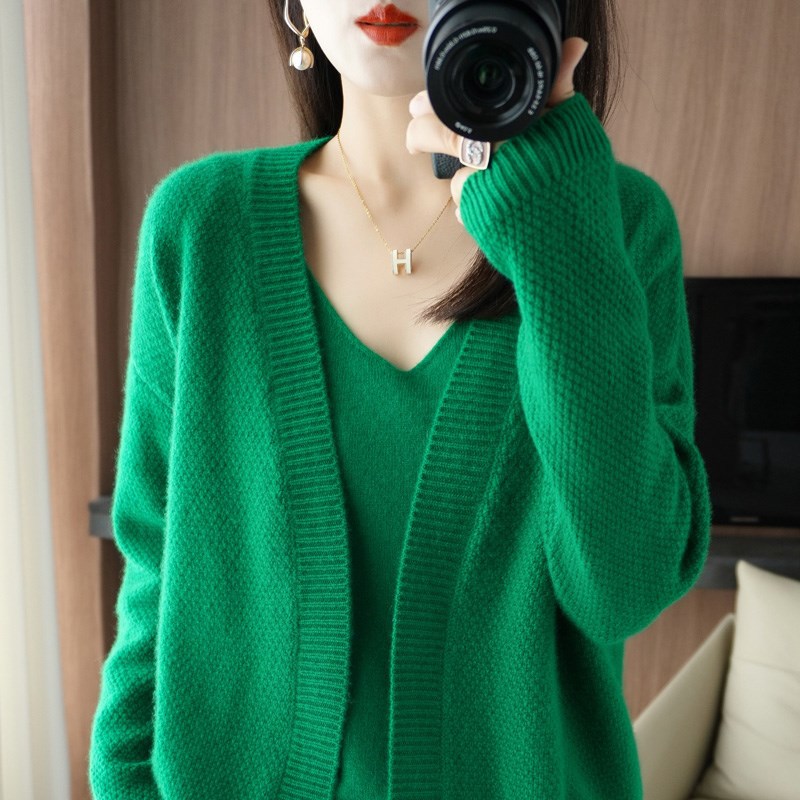 | nameOriginal | Two-piece Autumn and Winter Shirt Short Women's Knitted Sweater Coat Solid Color Long Sleeve V-Neck Korean Loose Top |