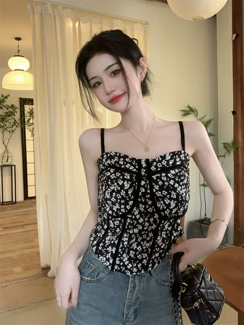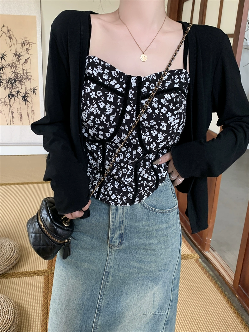 | nameOriginal | Two-piece blouse set with irregular floral suspenders |