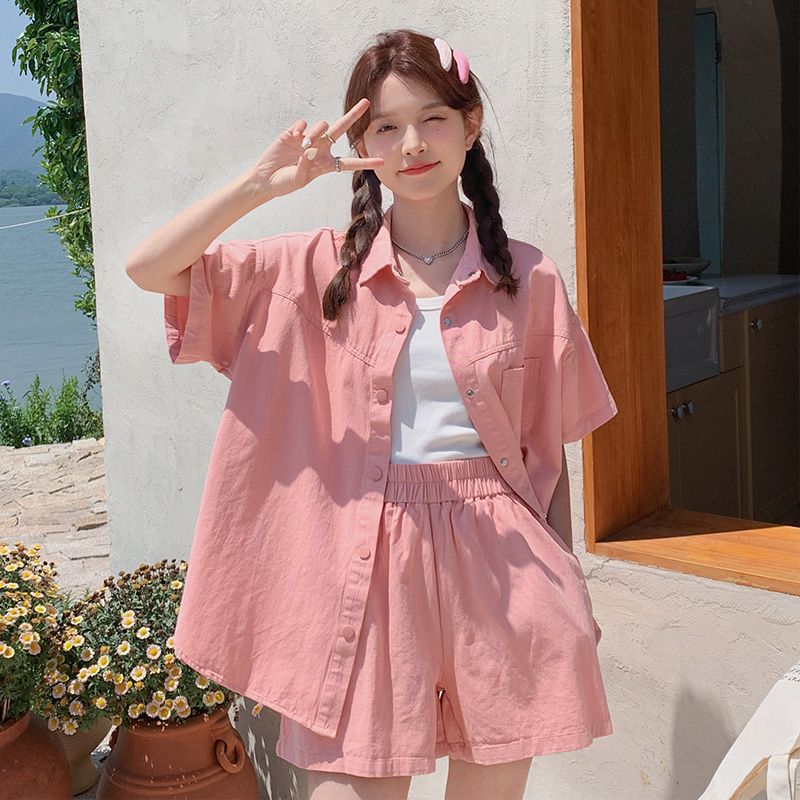| nameOriginal | [Two-piece] Japanese Sweet Short-sleeved Shirt Women's Loose Top Thin Coat All-match Casual Wide-leg Shorts |