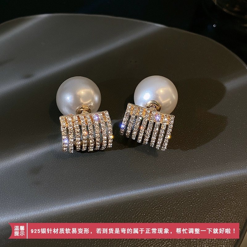 Two-piece pearl women's autumn and winter fashion earrings with sparkling diamonds