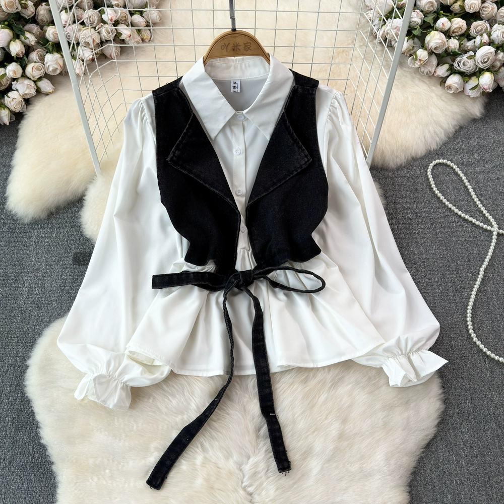 | nameOriginal | [Two-piece suit] New autumn Korean style loose chiffon shirt design short denim vest jacket for women |