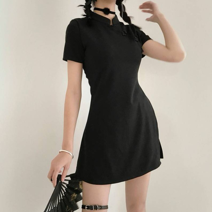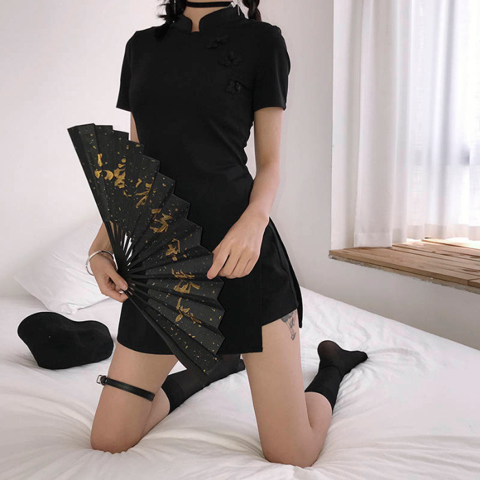 | nameOriginal | Two-piece Suit Pants Modified Cheongsam Black dress 2019 Summer New Fashion Retro Black Dress Trendy |