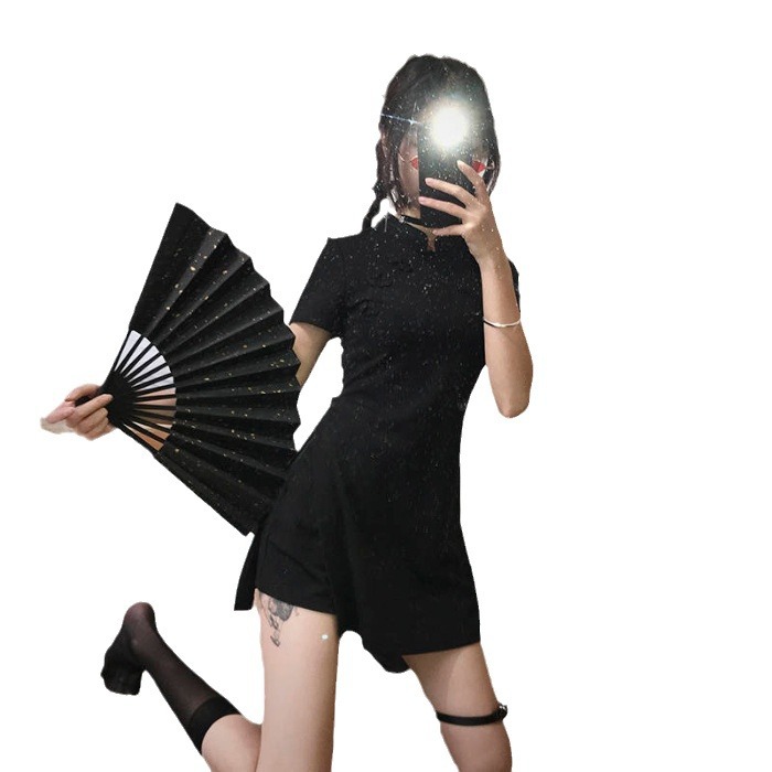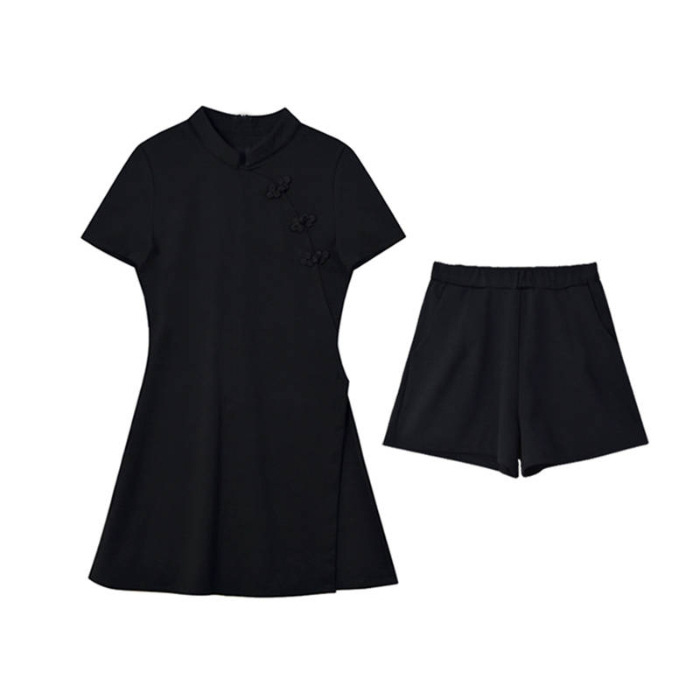 | nameOriginal | Two-piece Suit Pants Modified Cheongsam Black dress 2019 Summer New Fashion Retro Black Dress Trendy |