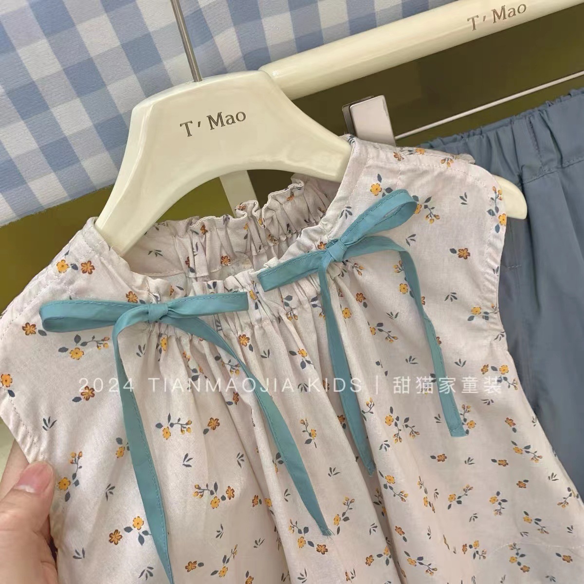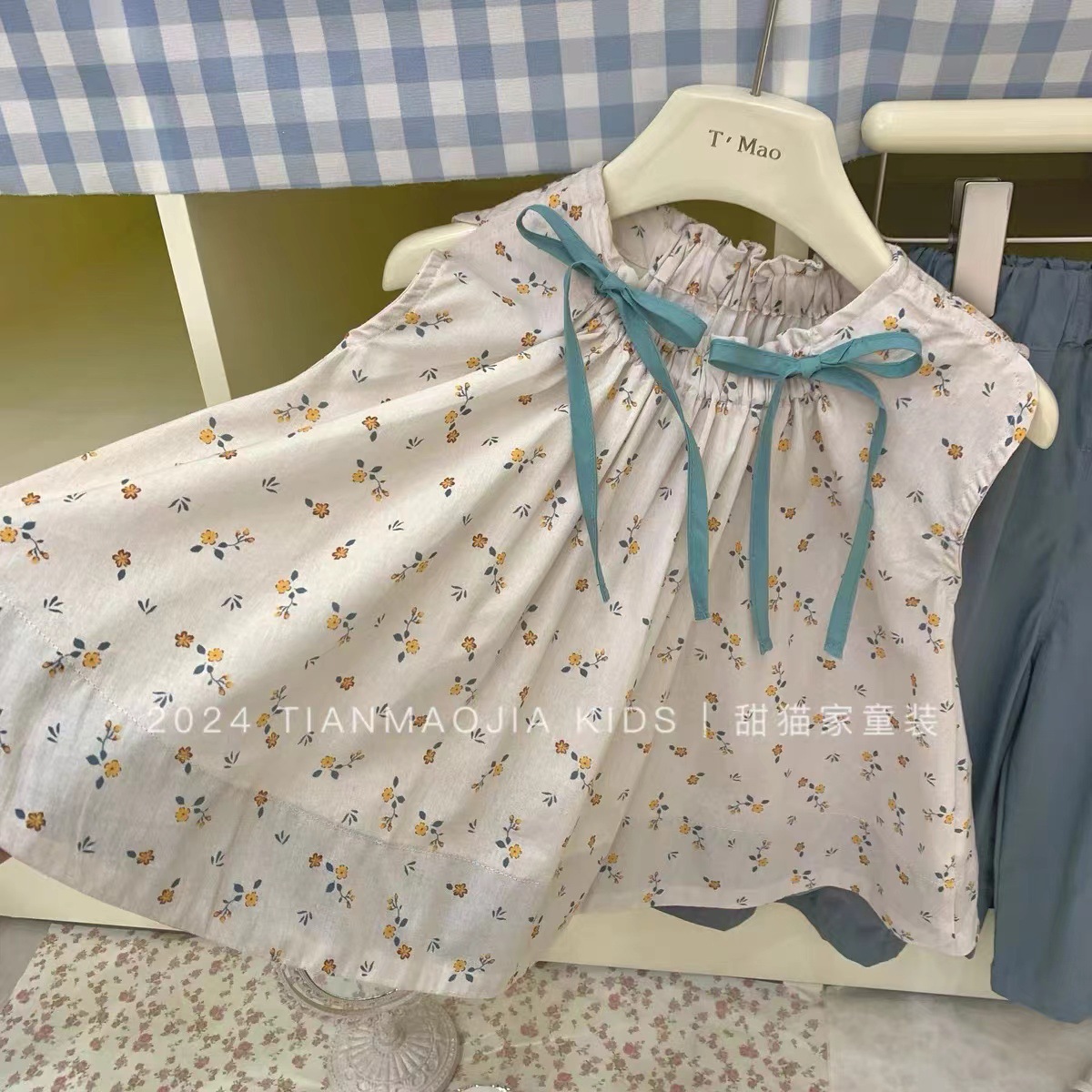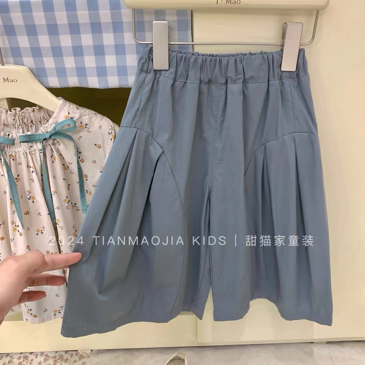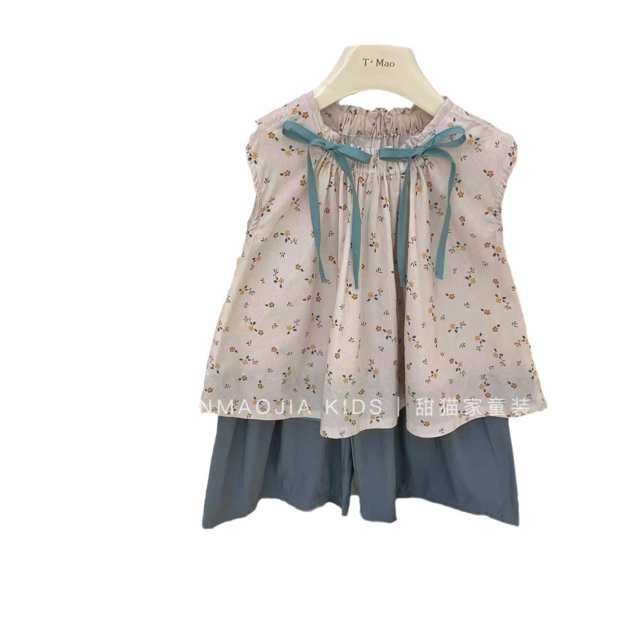 Two-piece Suit Summer New Girls’ 2024 Top Floral Shirt Children’s Wide Leg Cropped Pants Baby’s Cotton Cloth Pants