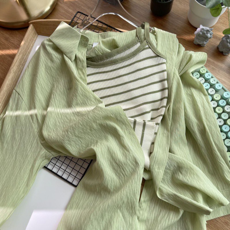 | nameOriginal | Two-piece Suit Women's Japanese Style Gentle Style Niche Design Sense Soft Milk Blue Loose Casual Thin Sunscreen Shirt Top for Summer |