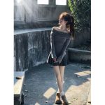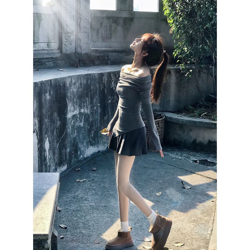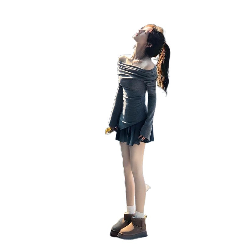 | nameOriginal | Two-piece Suit Women's Pure Desire Shoulder Long-sleeved T-shirt Women's Design Sense Niche Irregular Grey Top Pleated Skirt |