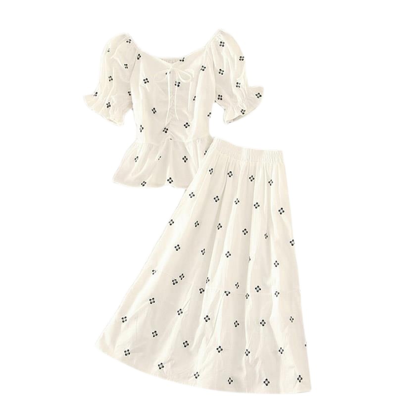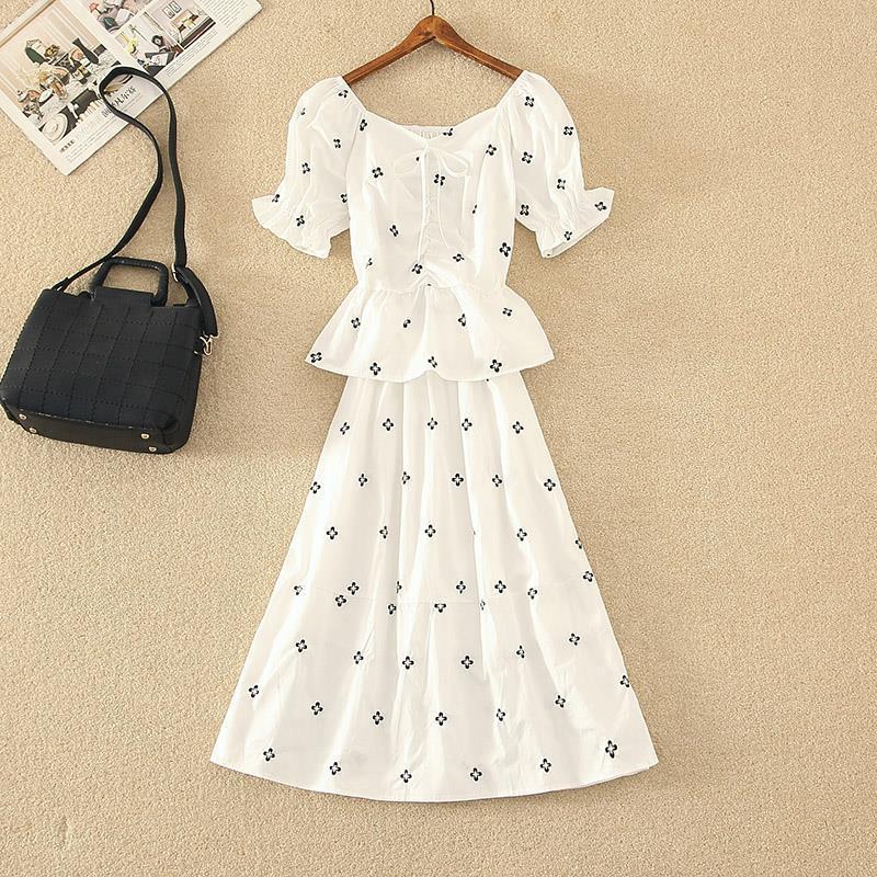 | nameOriginal | Two-piece Women's Summer Dress New French Fashionable Casual Tight Waist Slimming Age-reducing Skirt Western Style Fairy Skirt suit |