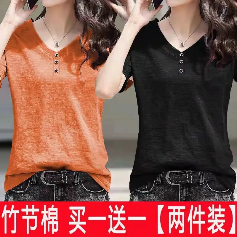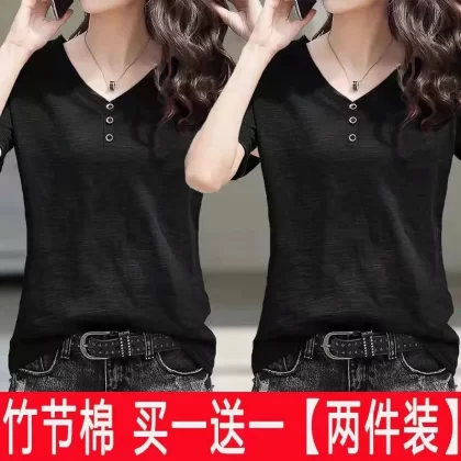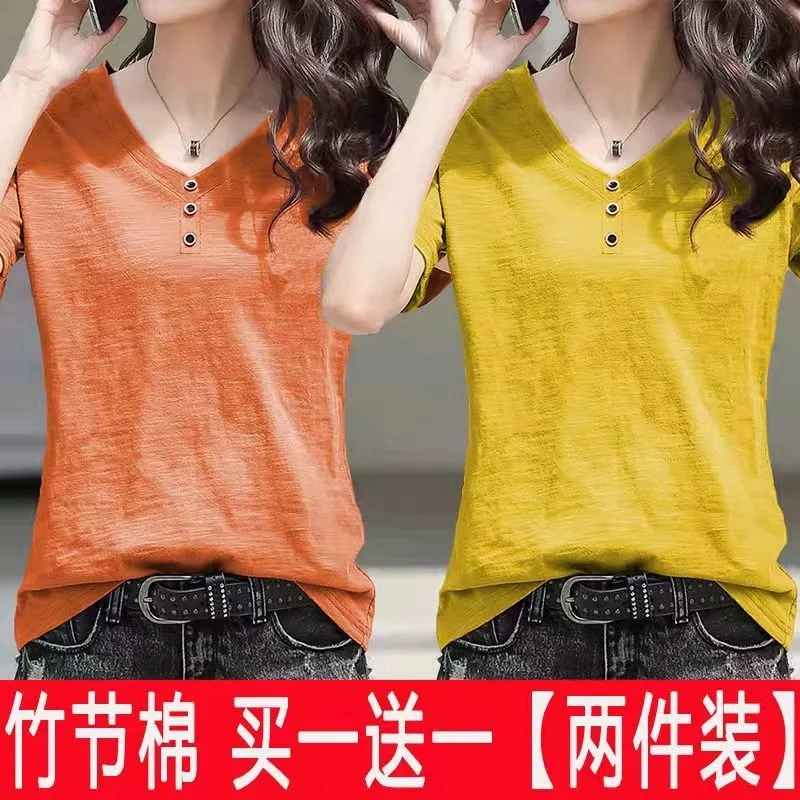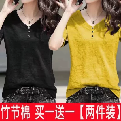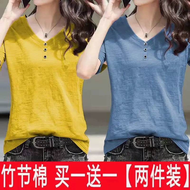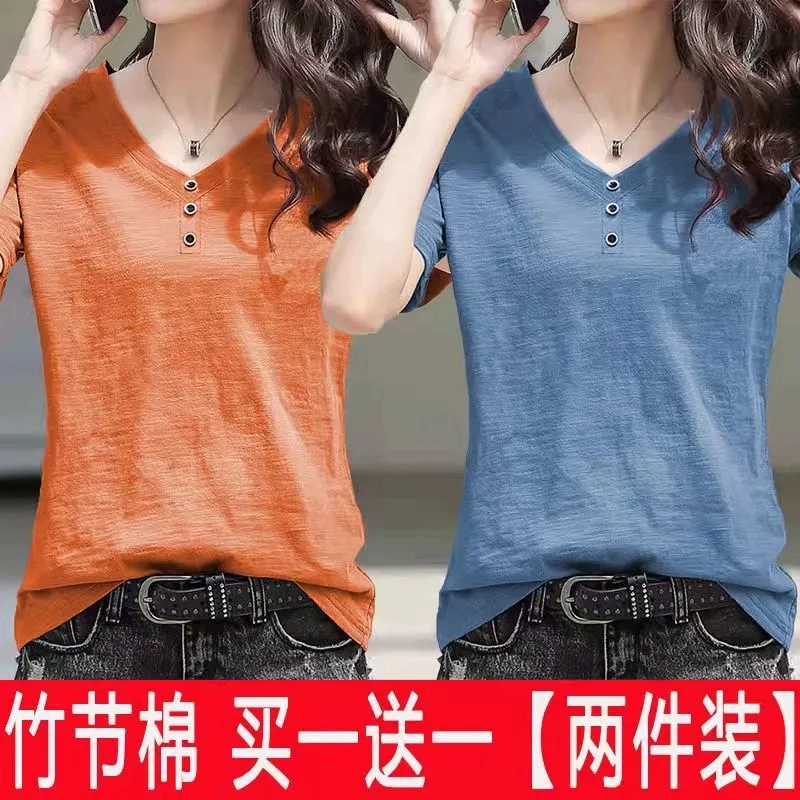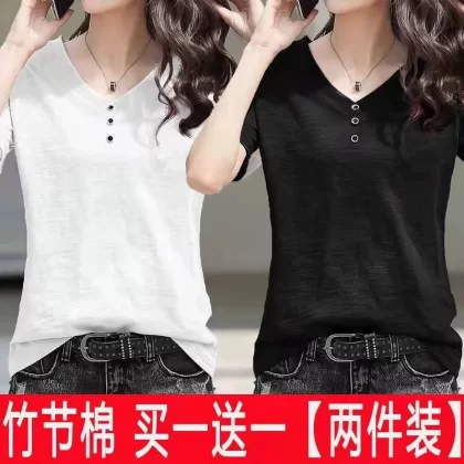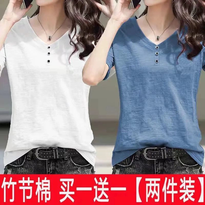 Two pieces of bamboo cotton loose v-neck bottoming shirts short-sleeved T-shirts
