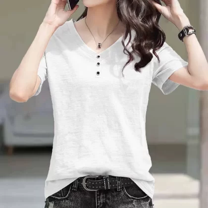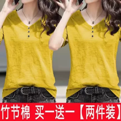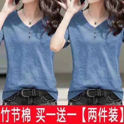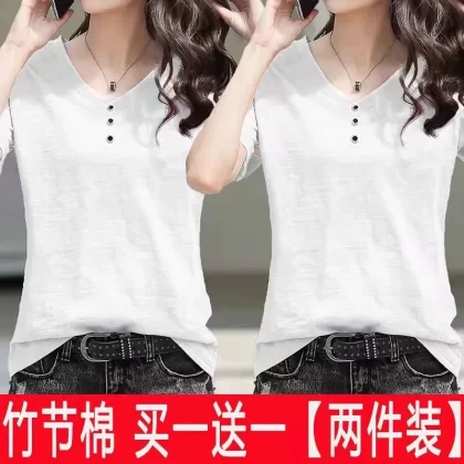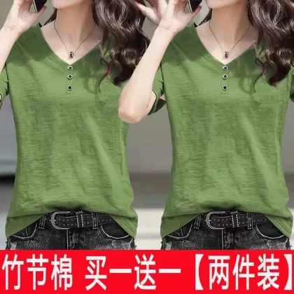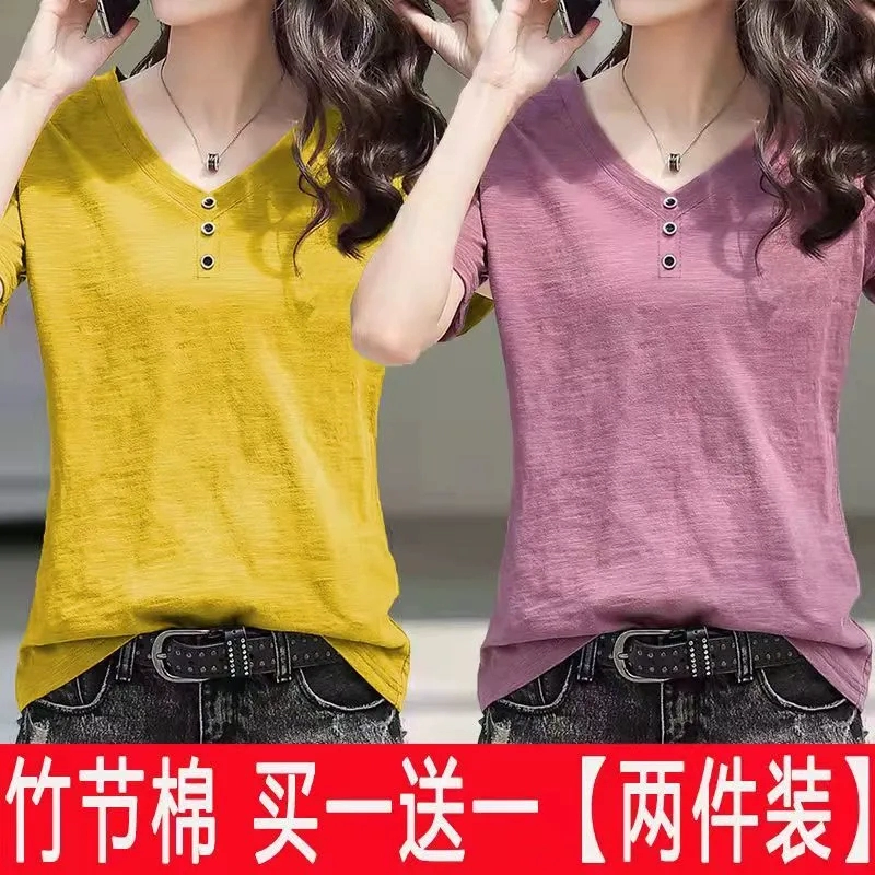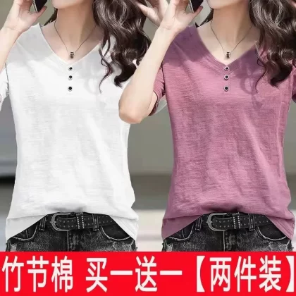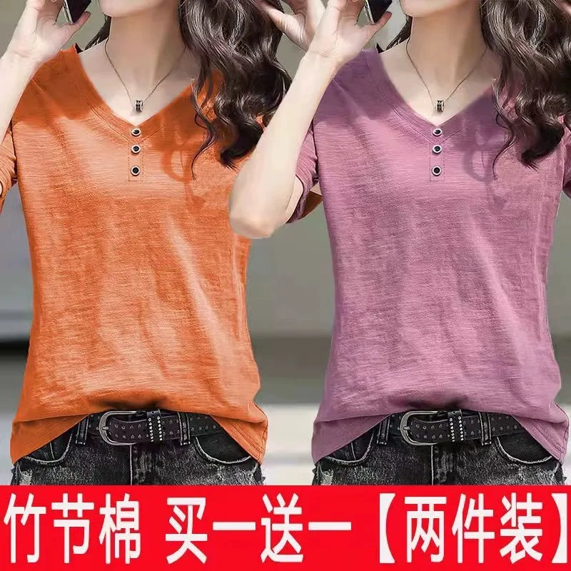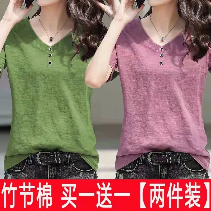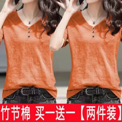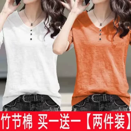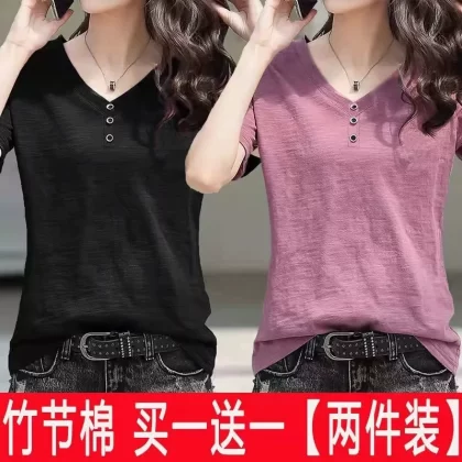 Two pieces of bamboo cotton loose v-neck bottoming shirts short-sleeved T-shirts