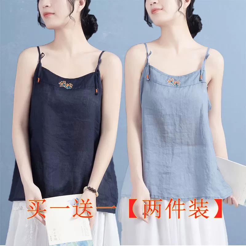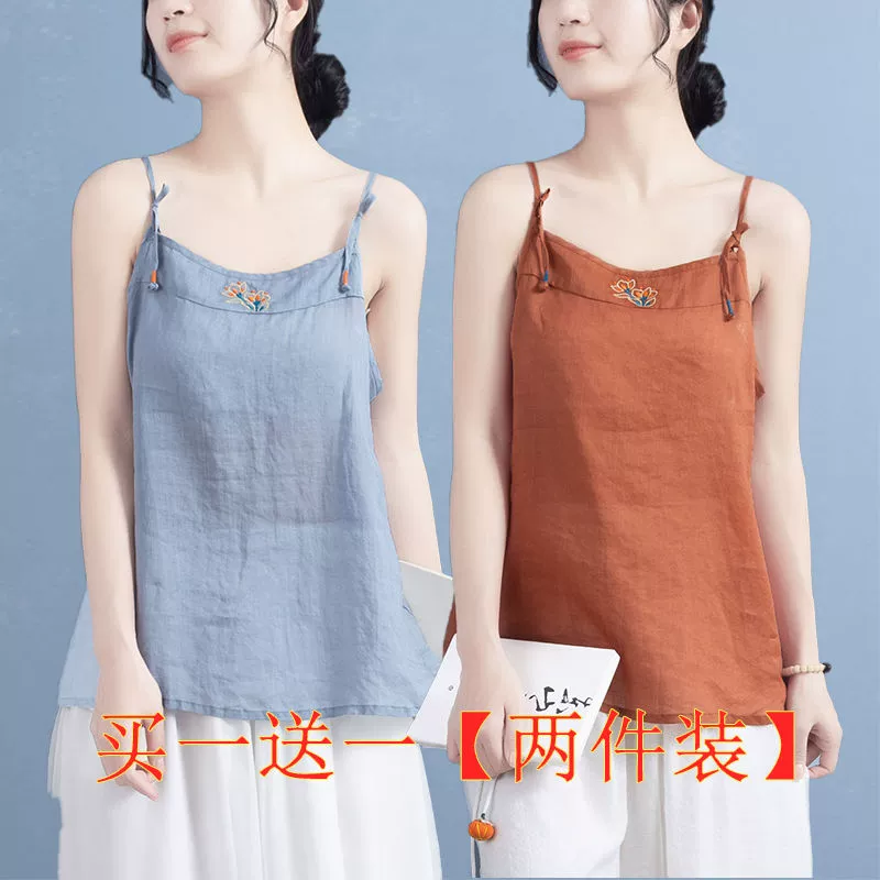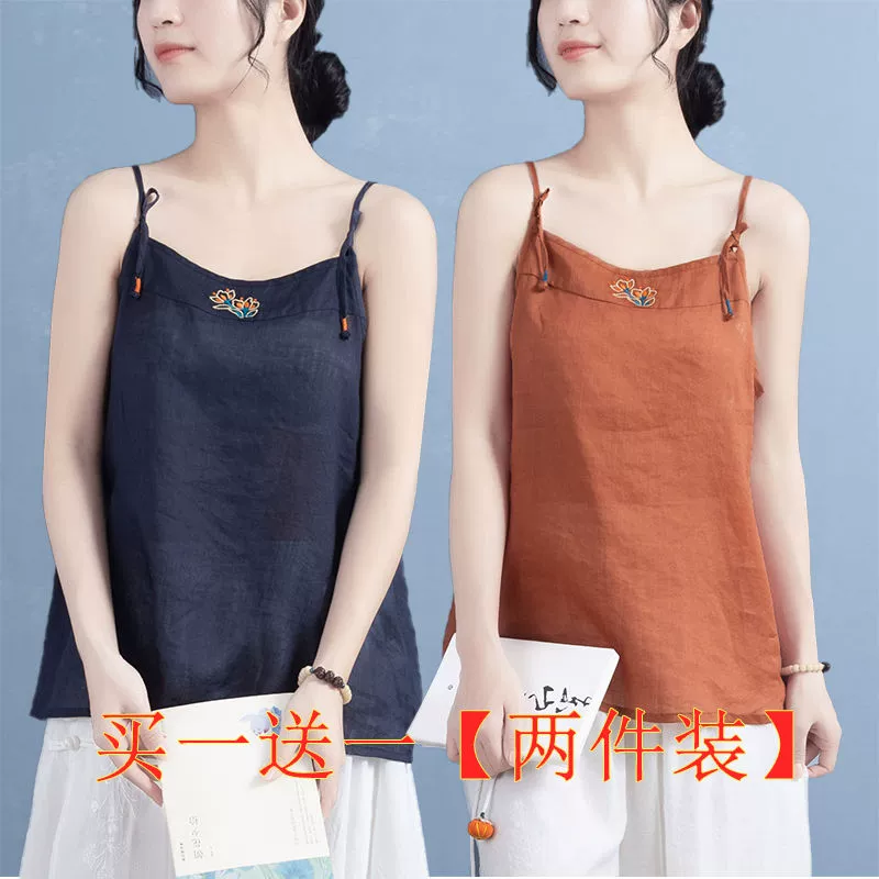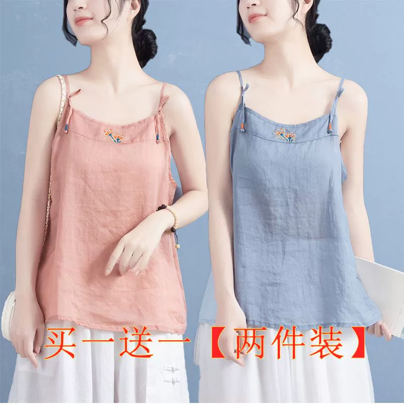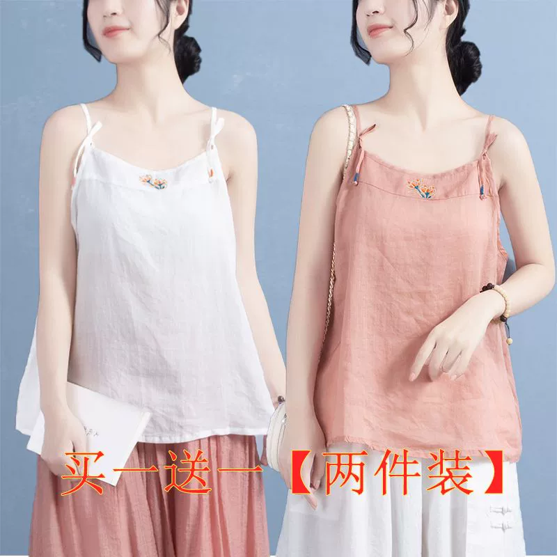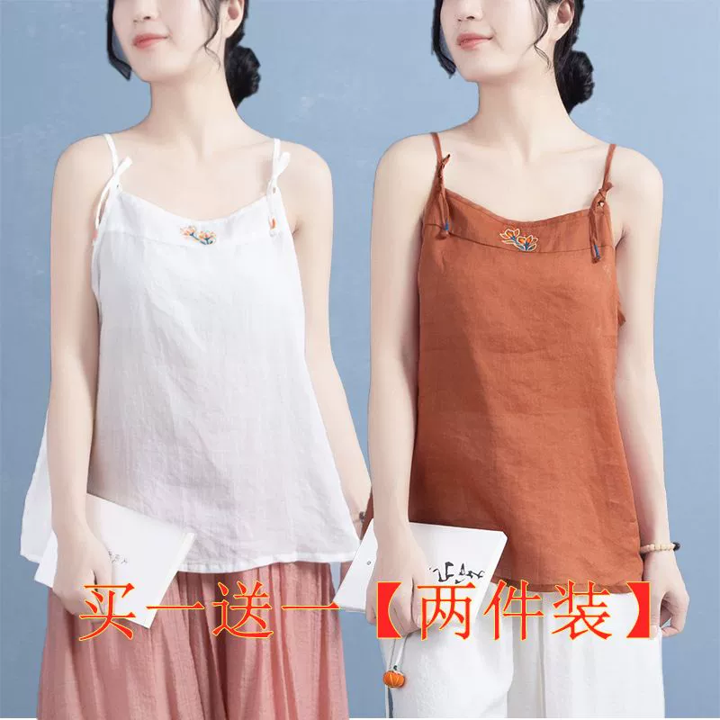 | nameOriginal | Two pieces of Chinese style pure cotton and linen suspenders with Zen embroidery |