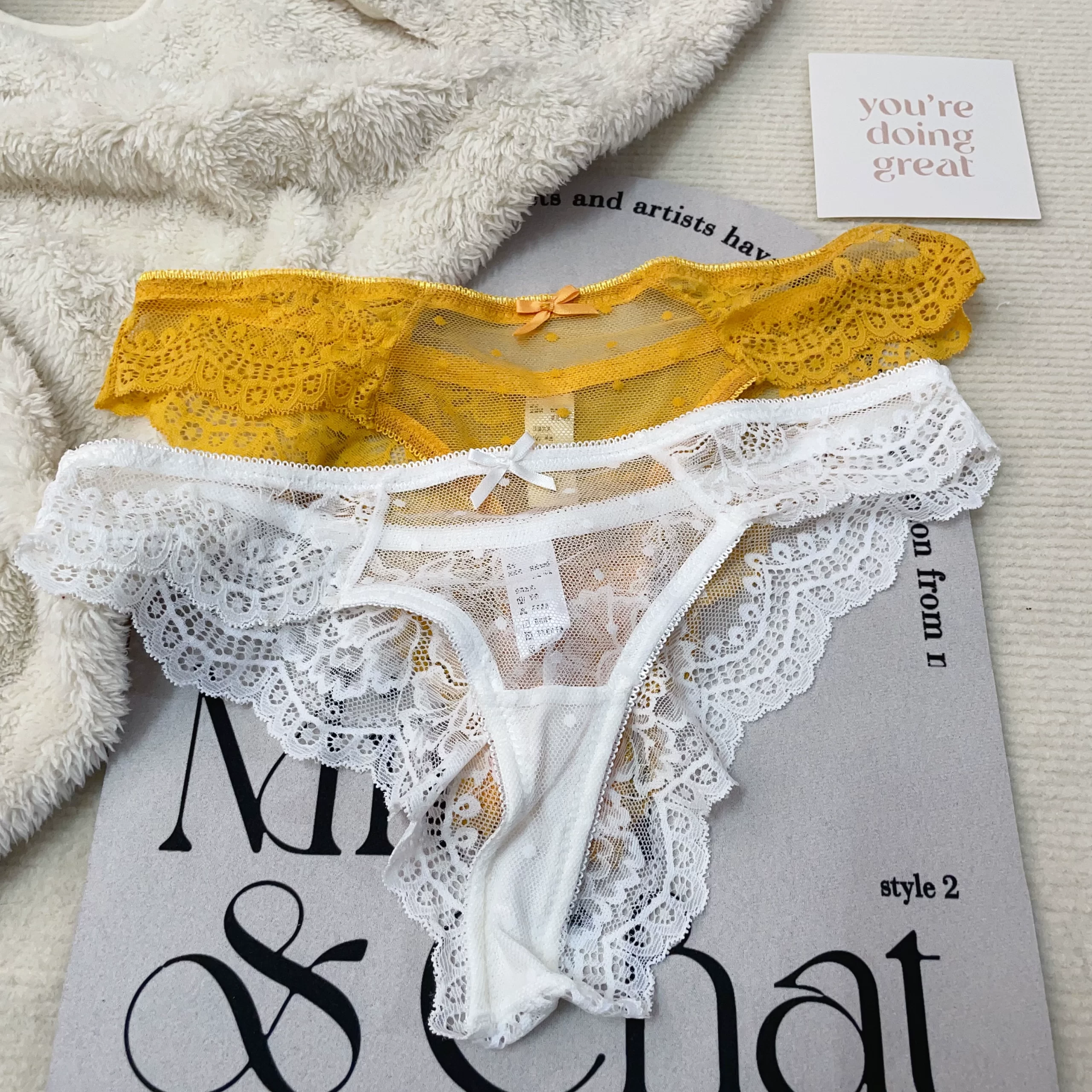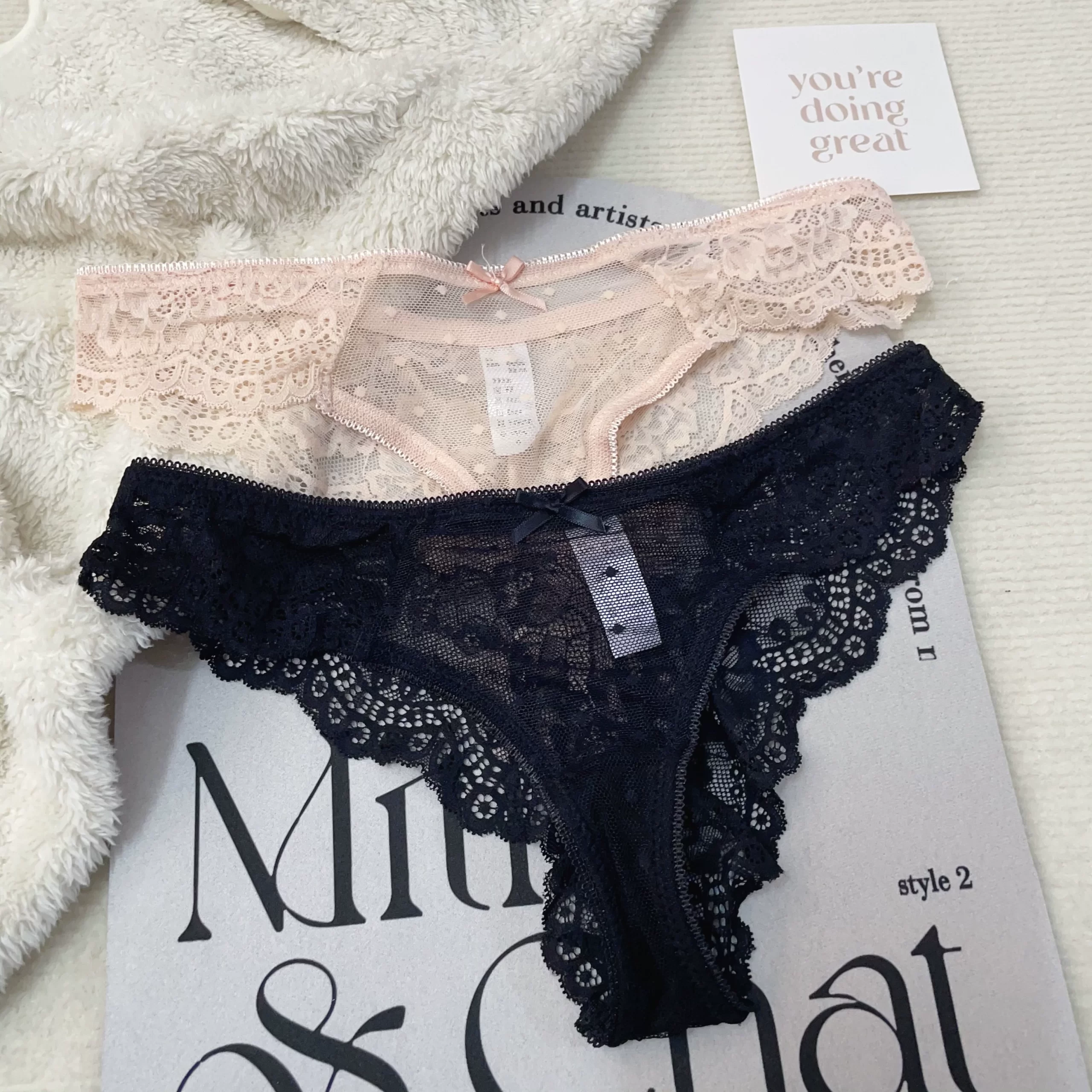 | nameOriginal | Two pieces of transparent hollow lace panties, pure desire new half-covering hip briefs, high-cut comfortable pants, breathable large size |