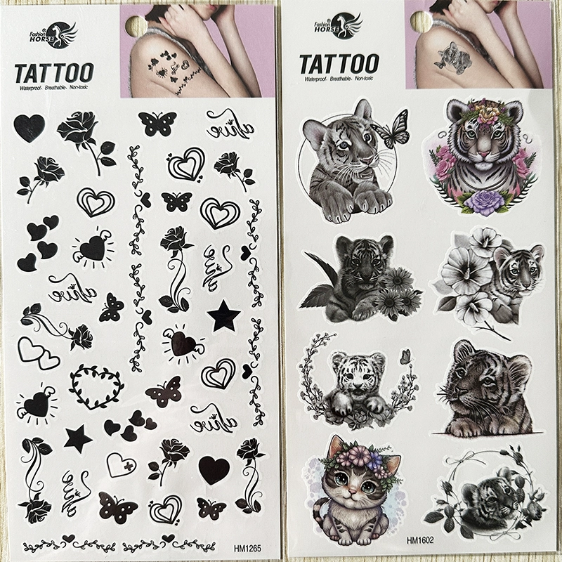| nameOriginal | Two tiger mouth small pattern rose heart-shaped tattoo stickers |
