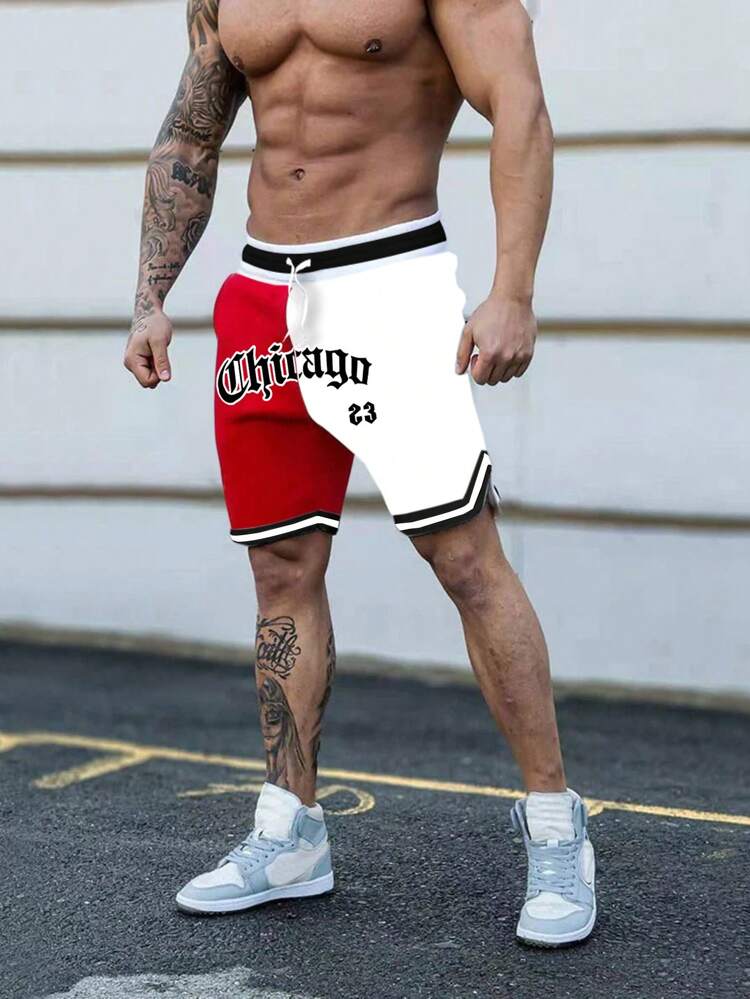 | nameOriginal | Men Letter Graphic Two Tone Drawstring Waist Contrast Binding Shorts  |