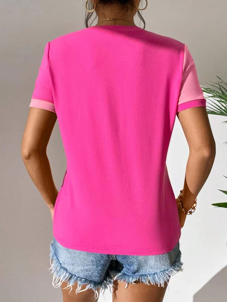 Two-tone round neck tee from SHEIN’s EZwear collection.