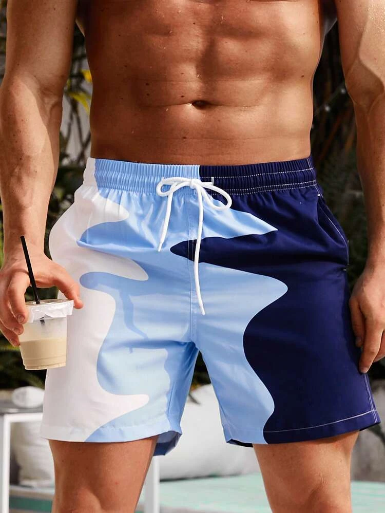 | nameOriginal | Men Two Tone Drawstring Waist Swim Trunks |