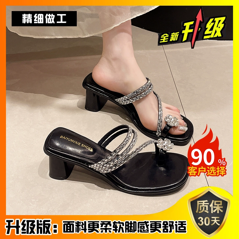 | nameOriginal | Two-wear rhinestone thong fairy-style chunky high-heeled sandals |
