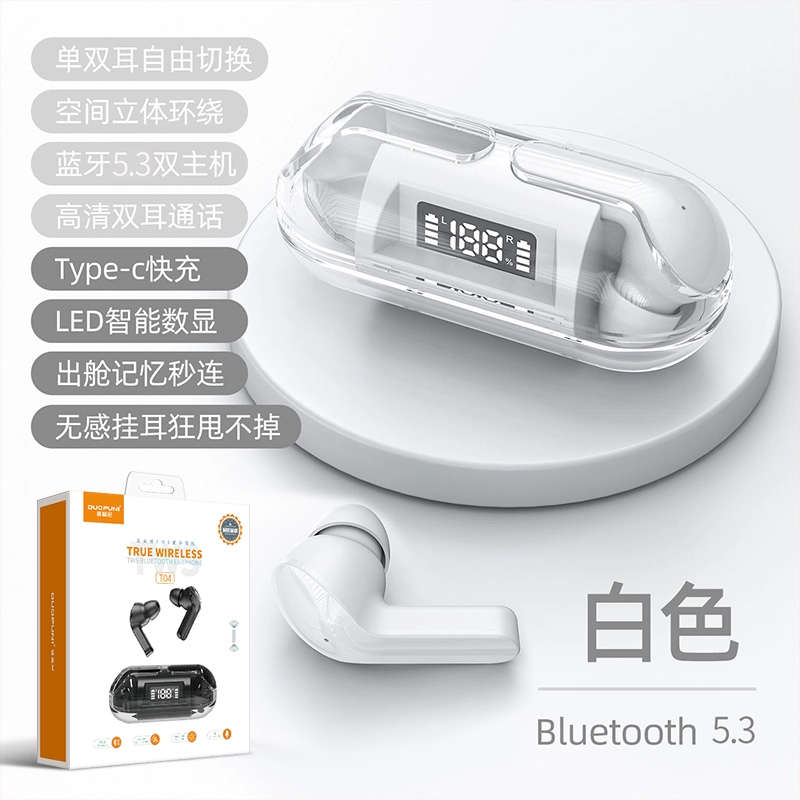 | nameOriginal | TWS fully transparent Bluetooth headset 5.3 true binaural wireless digital display stereo sports in-ear charging compartment batch |